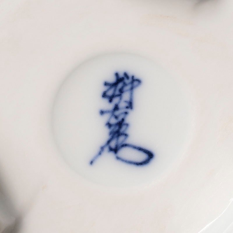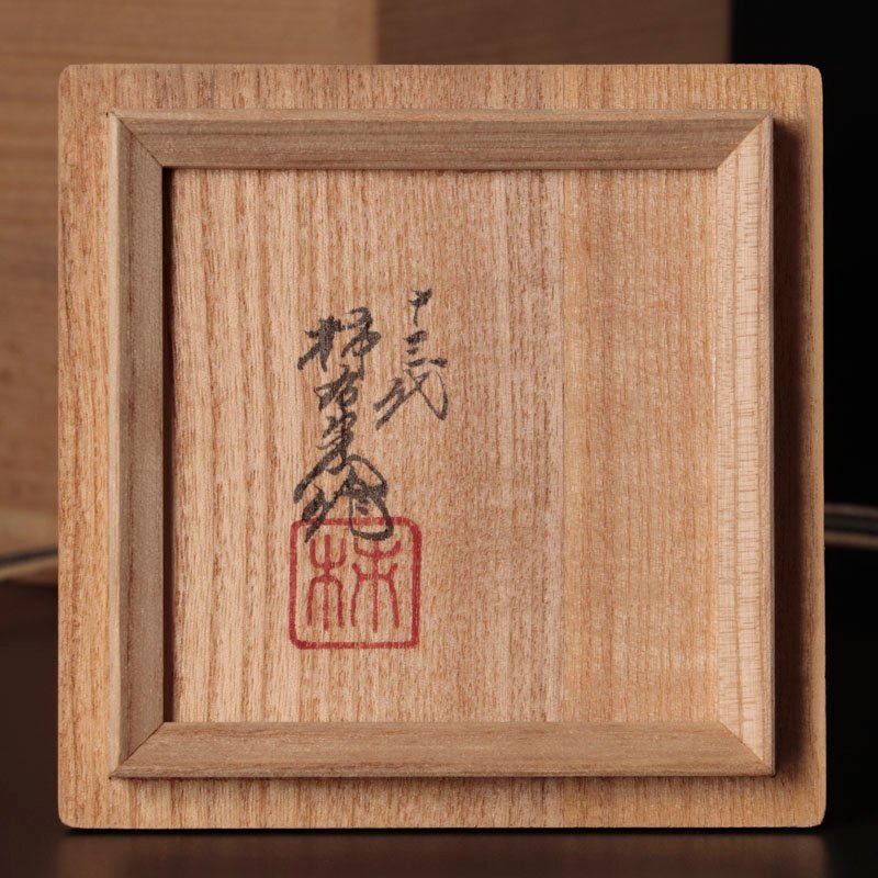 【十三代酒井田柿右衛門】 伝統の柿右衛門家に十二代代柿右衛門の長男として生まれ陶技を父より学ぶ、十二代柿右衛門在命時には酒井田渋雄として作品を制作、佐賀県展や日本伝統工芸展などに出品、入選を重ね、1955年には初代柿右衛門の生誕300年を記念して父十二代柿右衛門と、子息の正(現十四代柿右衛門)で濁手の技法を復興。63年には父の死に伴い十三代酒井田柿右衛門を襲名。翌年には日本工芸会正会員に推挙されるとともに襲名記念個展を全国各地の有数百貨店などで開催、同時期より「三衛門展」として今泉今右衛門、中里太郎右衛門と共に開催。66年には佐賀県文化功労者に選出、71年には伝統ある柿右衛門の技法を後年に残す意味合いで柿右衛門工房の上級技術者を率いて「柿右衛門製陶技術保存会」を設立、氏と保存会に対して「濁手」技法で同年に国指定重要無形文化財(人間国宝)の総合指定を受けている。 |