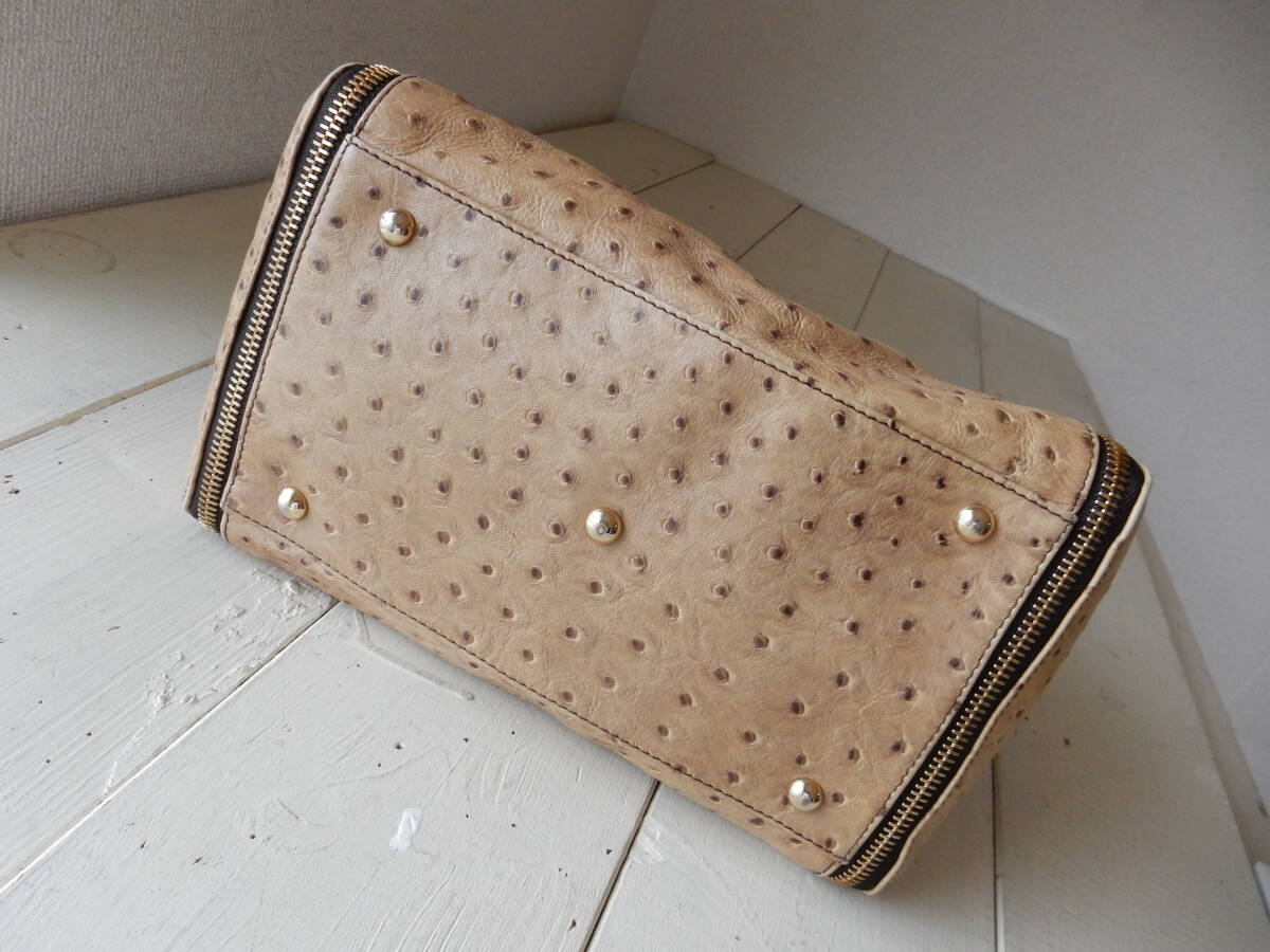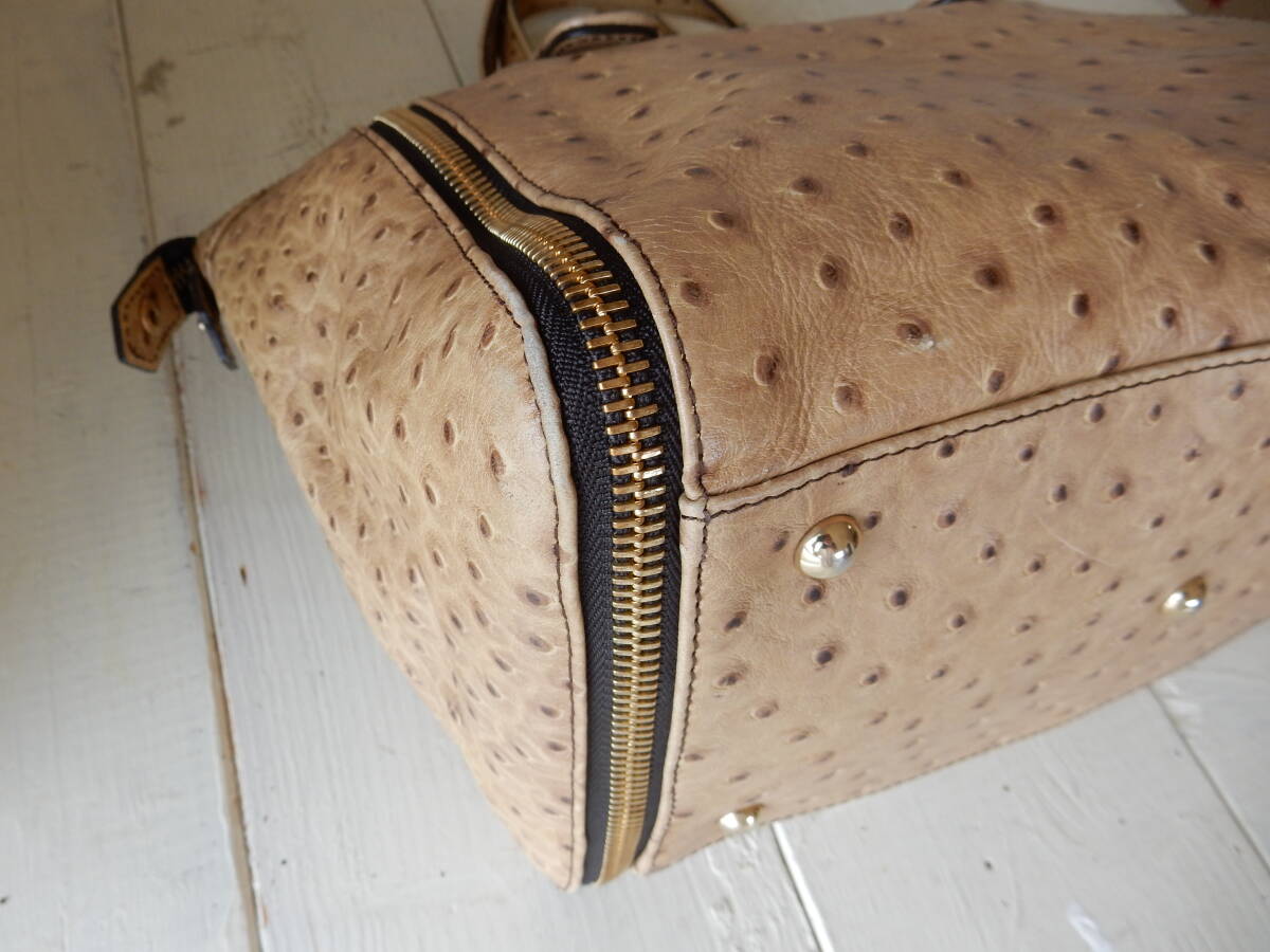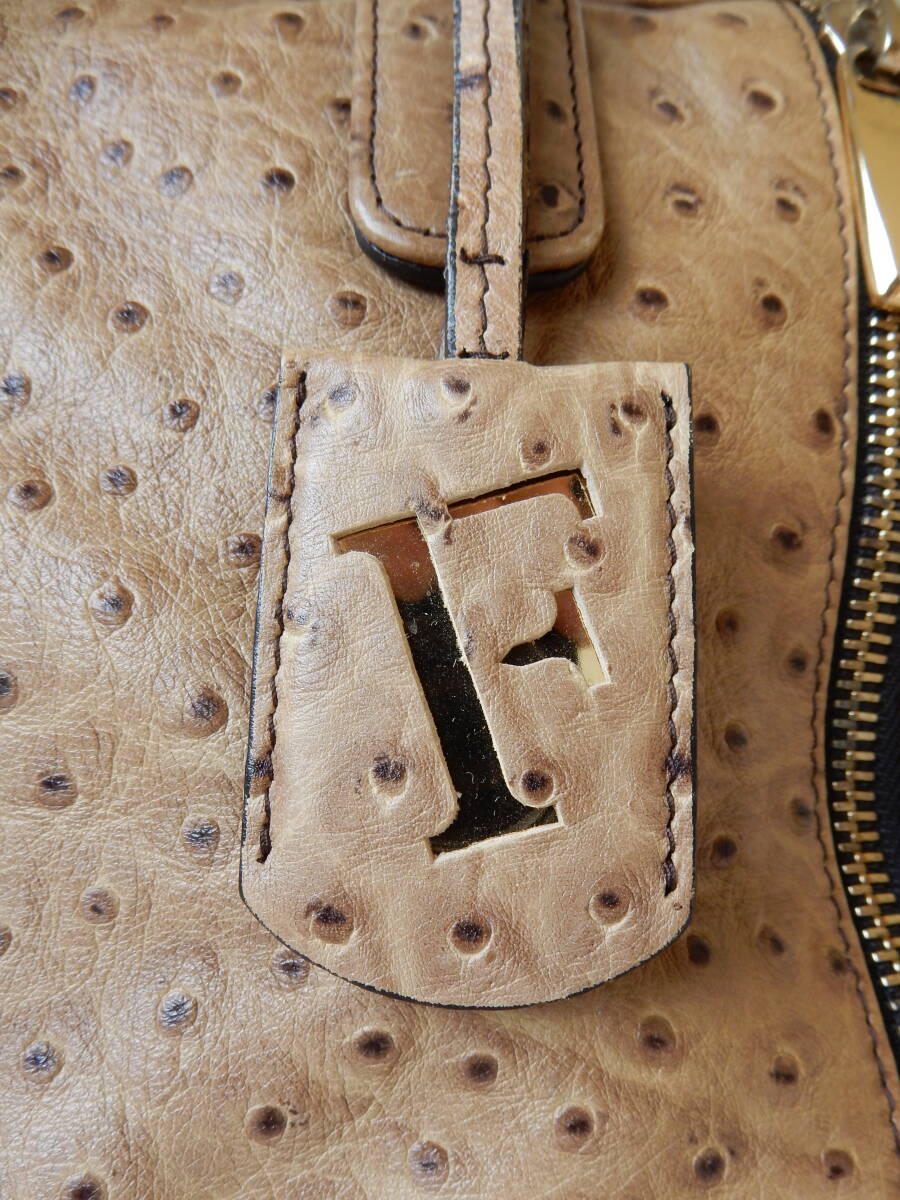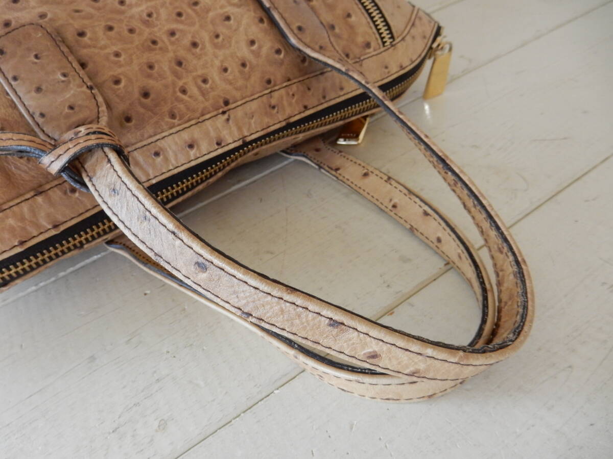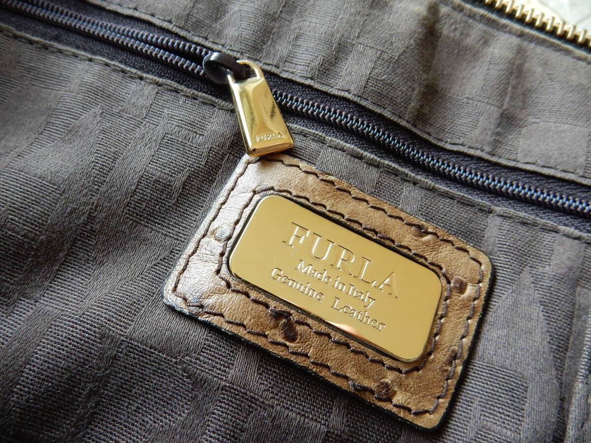 イタリア製☆本革☆FURLA(フルラ)☆A4対応☆オーストリッチ型押し☆トートバッグ ベージュ(金具ゴールド)保存袋付き