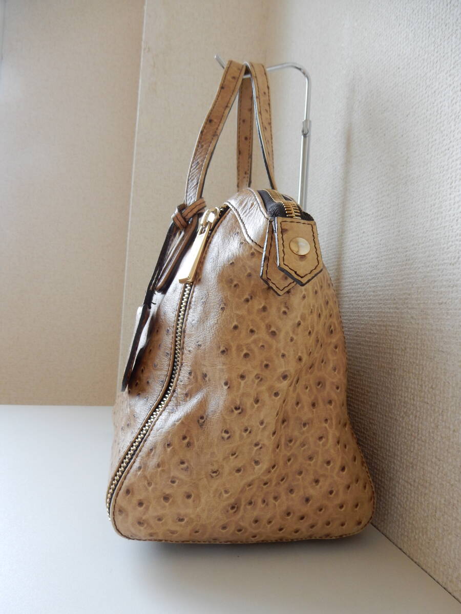 オーストリッチ型押しにロゴチャームがアクセントとなった本革トートバッグ。