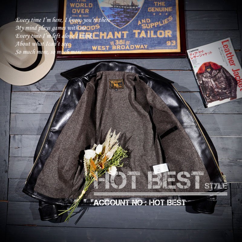 1.3mm 茶芯ホースハイド 30's トラッカースタイル メンズ 革ジャン シングルライダース オイルワックス レザージャケット 馬革 Y1197/3XL