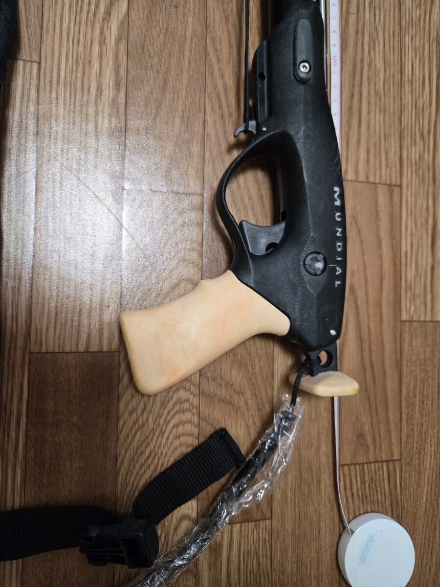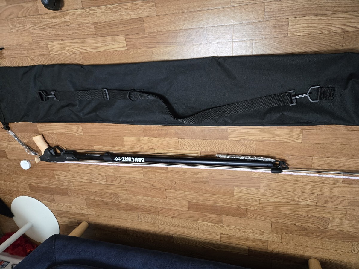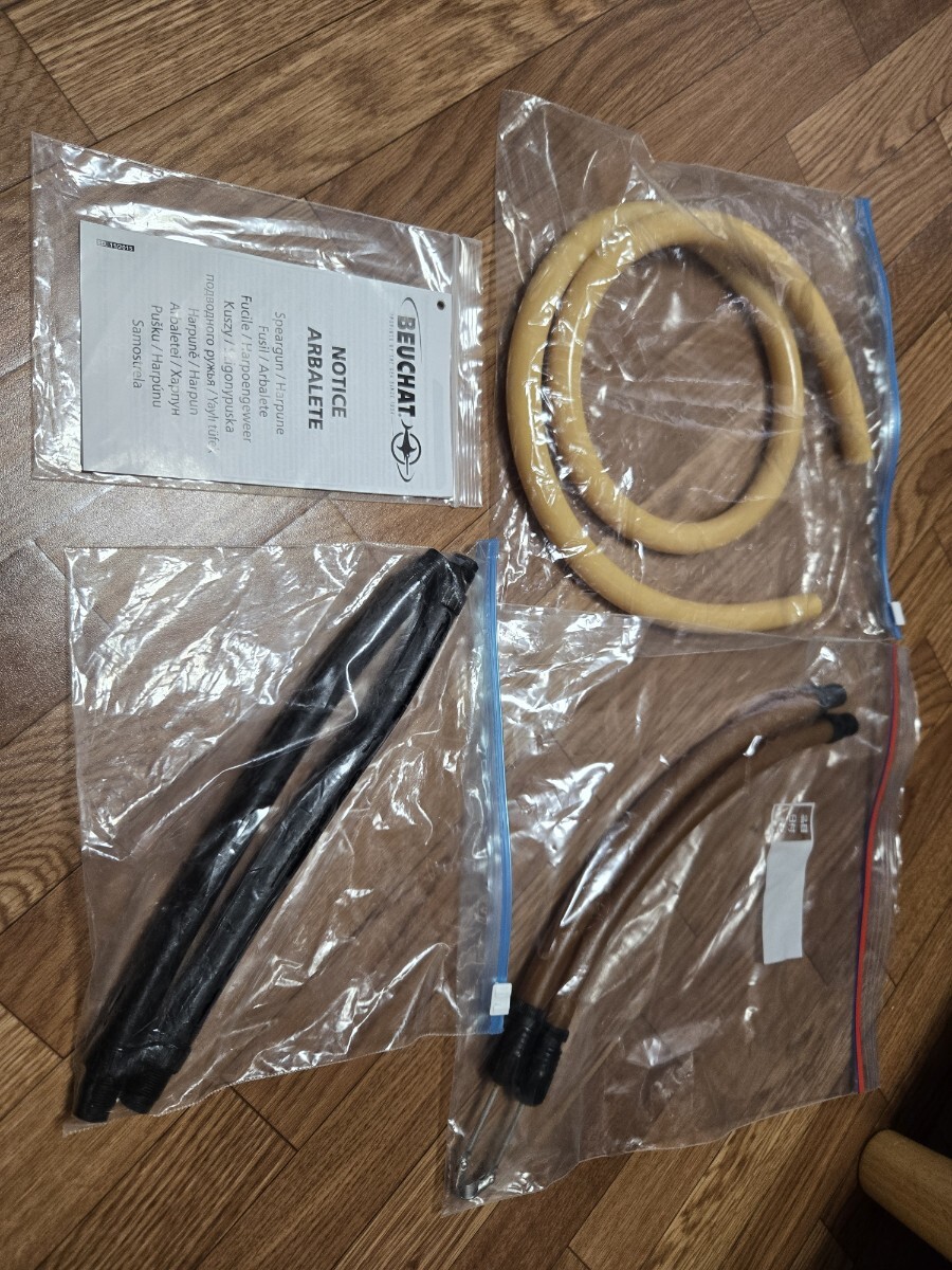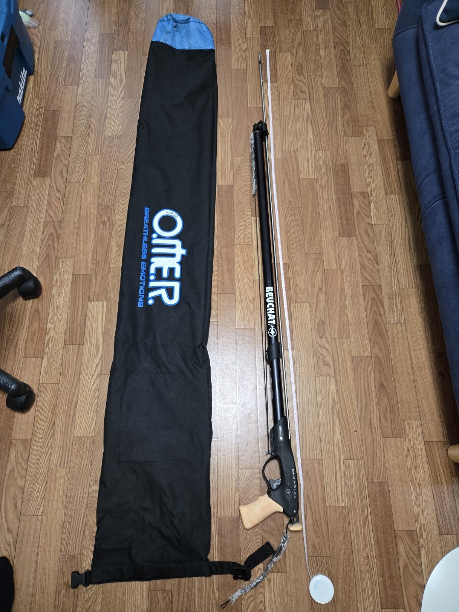 ブッシャーのスピアガン と オマーのバック と ゴム1一回使用+未使用品2本のセット販売です
