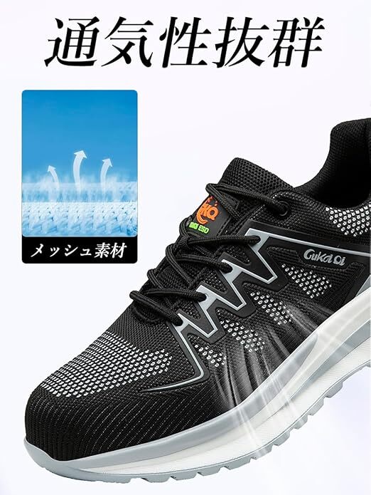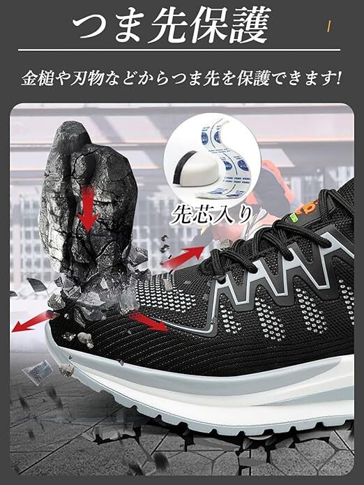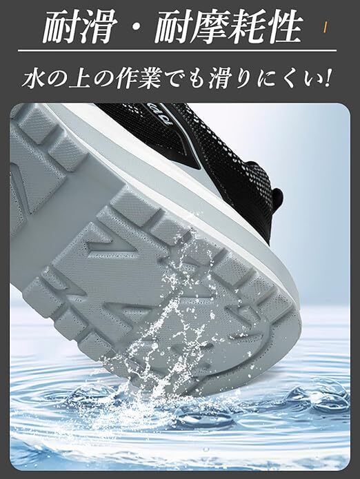 安全靴 軽量 作業靴 ワークシューズ 通気性 厚底 ローカット 耐摩耗 防滑 サイズ:27.5cm