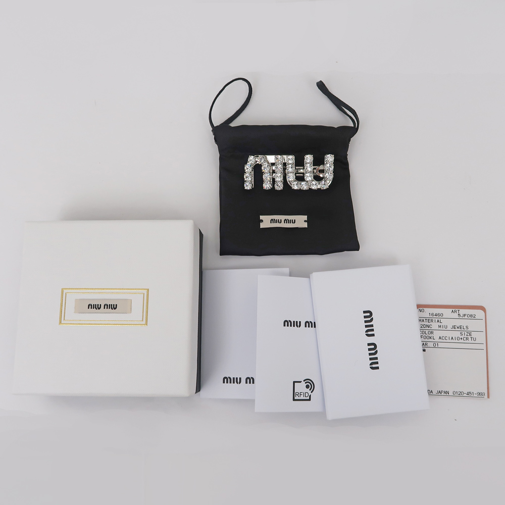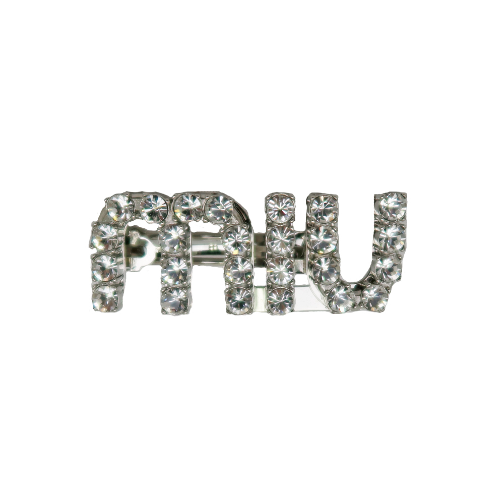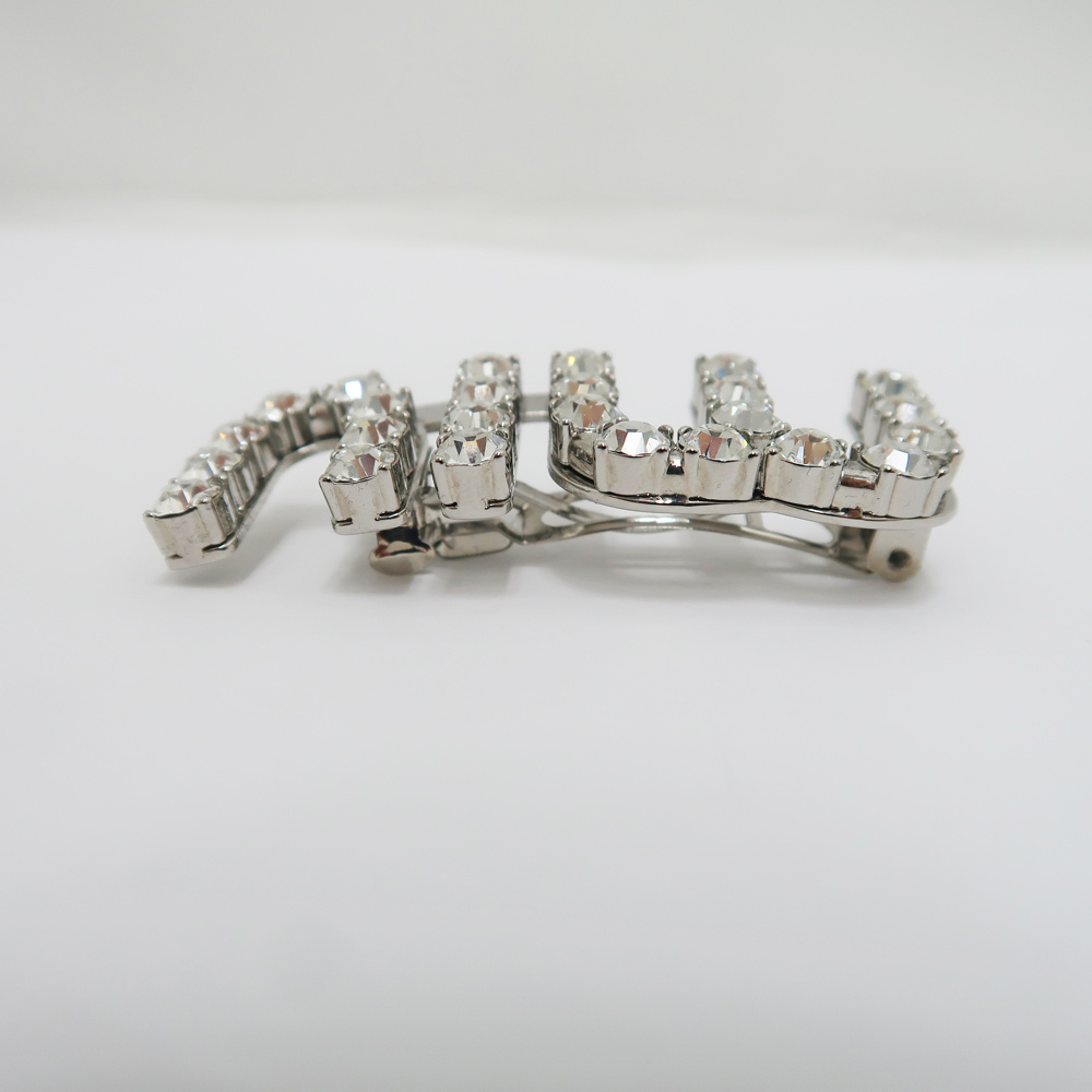 【名東】ミュウミュウ ロゴ ラインストーン 5JF082 バレッタ シルバーカラー 髪飾り ヘアクリップ 小物