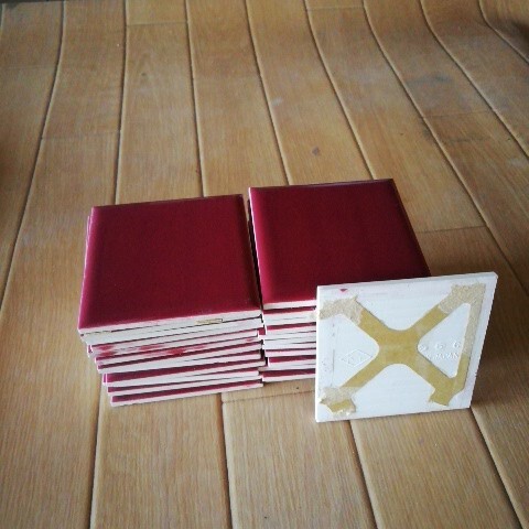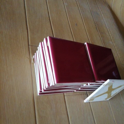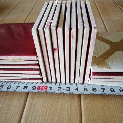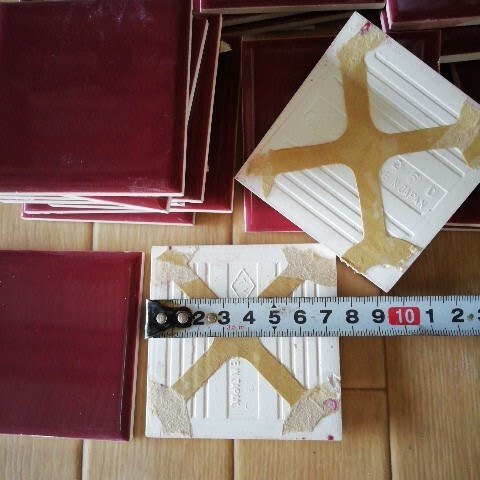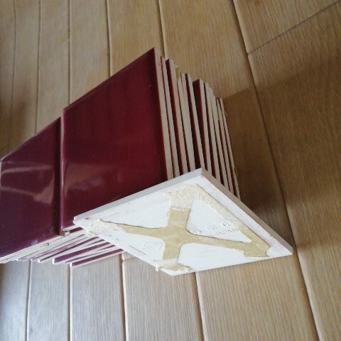 数十年前のタイルで裏のシートが劣化して破れたので切り放してまとめました、裏にシートが付いたままです。