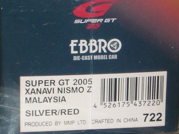 1/43 EBBRO SUPER GT 2005 XANAVI NISMO Z MALAYSIA NO.1 銀/赤です。箱が少し傷んでいますので、ご了承の上入札ください。商品の状況は写真でご判断の上、ノークレーム・ノーリターンでお願いします。保証はできませんが、定形外郵便での発送も可能です。