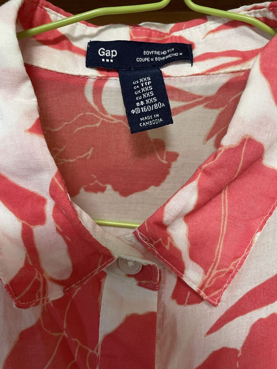 【男女兼用可】GAP 花柄シャツ/アロハシャツ ピンク花柄シャツ XXSサイズ