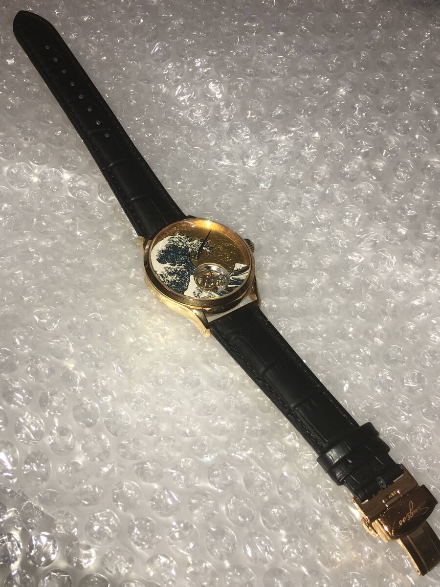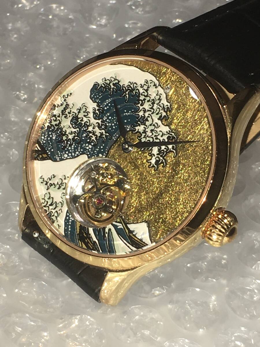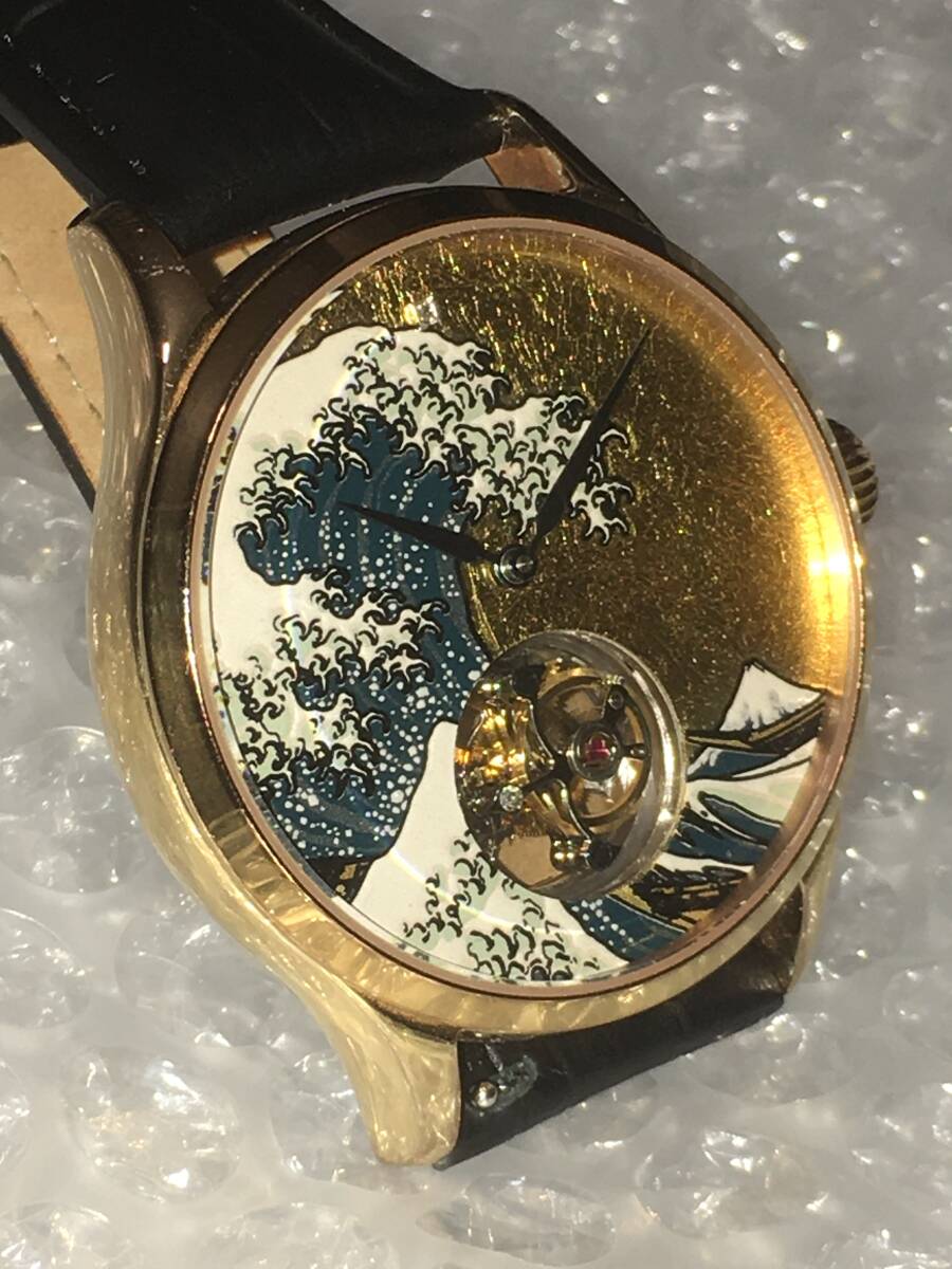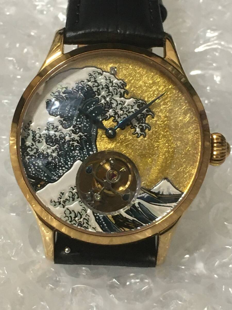 北斎 富岳 金蒔絵 24K金箔貼り文字盤 1Pダイヤ トゥールビヨン 手巻き USED品