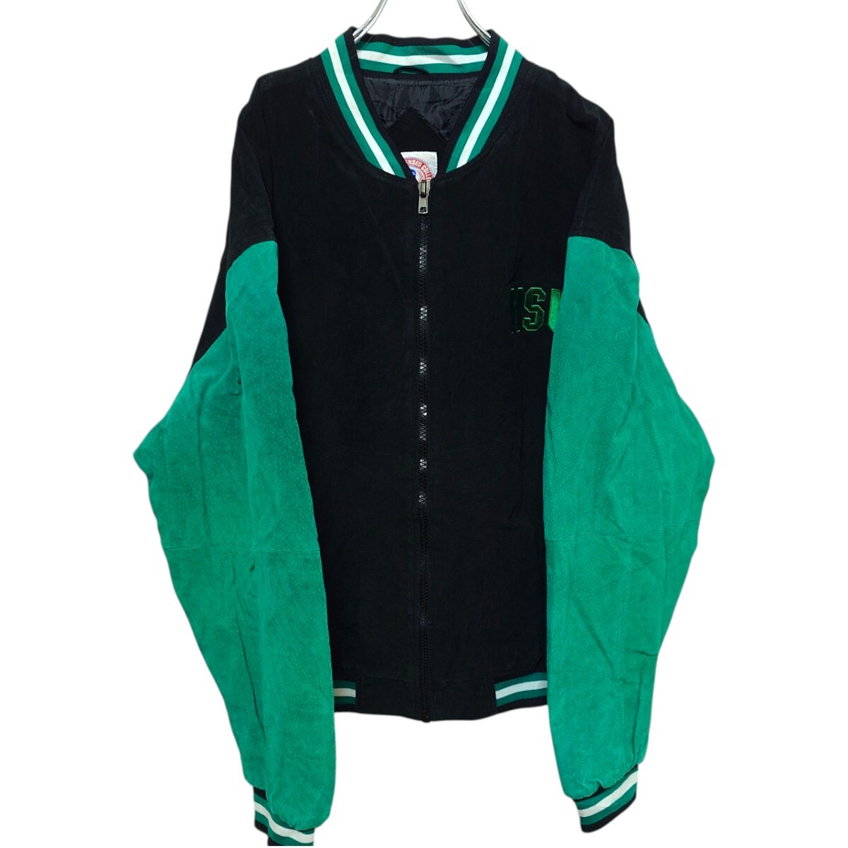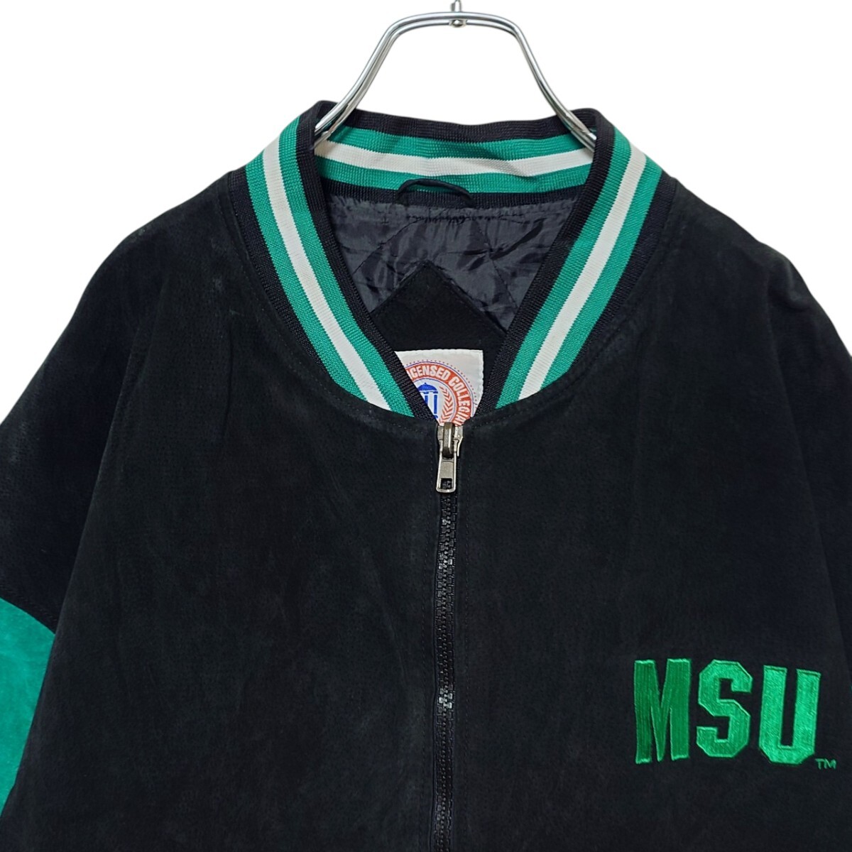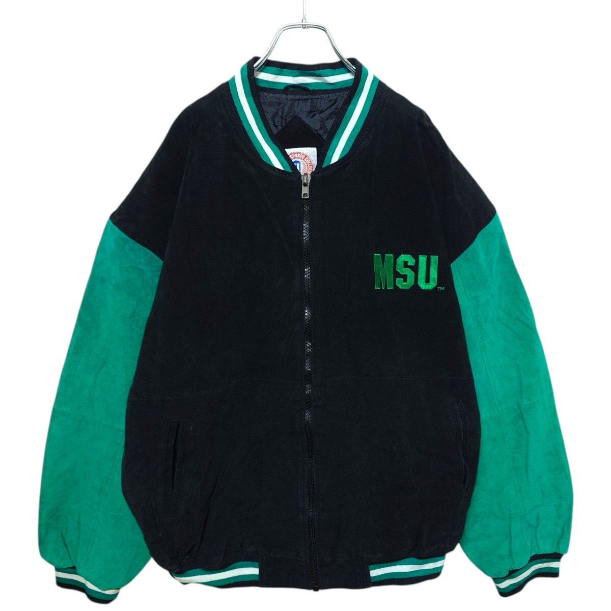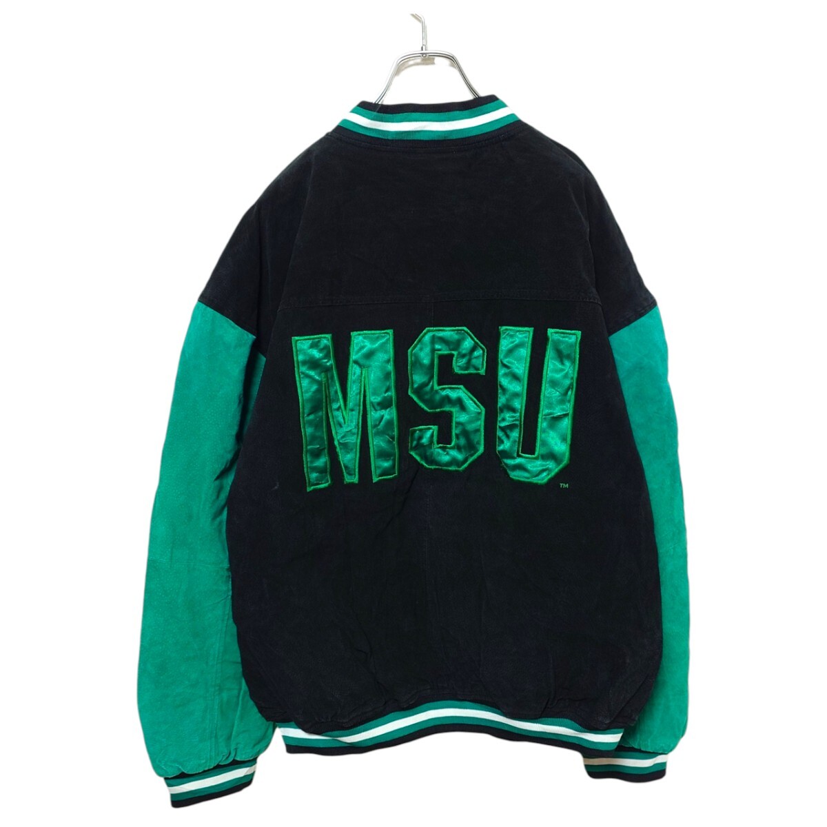 ミシガン大学 MSU カレッジロゴ刺繍 レザースタジャンです。