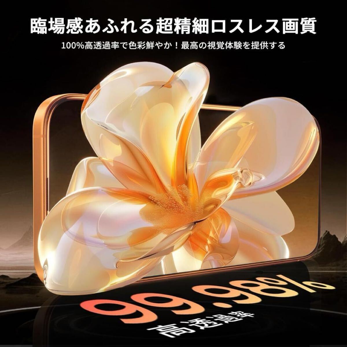 【超クリアなロスレス画質&健康を全面的に守る】ガラスフィルムは新開発の高透過率素材を採用し、99.98%の透過率が画面本来の色彩と細部を完璧に再現し、超クリアな視覚体験をお届けします。蛾の眼構造を模した反射防止技術により、日光下でも鮮明でシャープな画像を実現。弊社のガラスフィルムは、国際認証のブルーライト防止テストと抗菌テストをクリアしています。表面のAnti-Reflective/Anti-Blue Lightコーティングがブルーライトをカットし、長時間の使用でも目を傷めず、さらにナノ抗菌層が99.9%の細菌を強力に抑制するため、お子様が画面を触っても安心です。