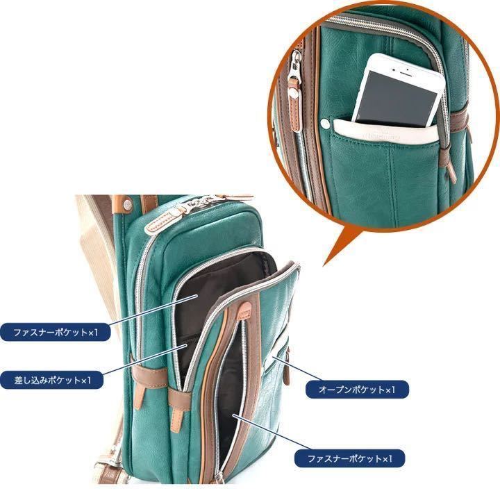 使い勝手の良い丈夫な合皮素材を使用したボディバッグです。