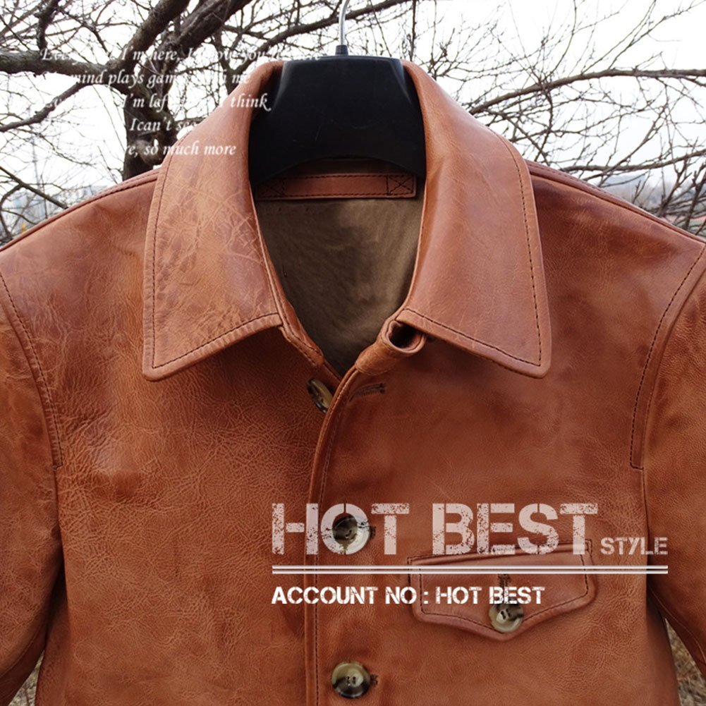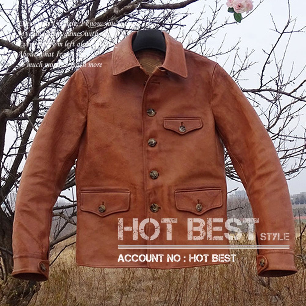 最高峰 ヌメ革 ホースハイド 復刻50's ドライビングコート レザージャケット カーコート ワークコート ナチュラル 馬革【XL】HBY672