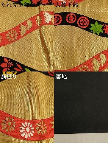 袋帯【正絹・芯なし】の状態は接写画像のように垂れ先上部・太鼓下部・胴回りに汚れ、裏地に薄い汚れがございますが その他特に目立ったシミ汚れなどもなく大変良い状態です。 大変上質な逸品になります。 お安く出品致しますので、是非この機会にいかがでしょうか? ※手先・たれ先未かがりですが着用には問題ありません。 |