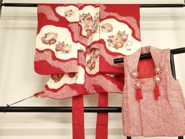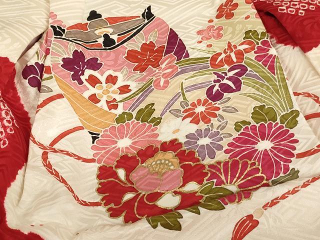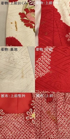 【祝着】 身丈 71.5cm(肩から) 裄丈 37cm(肩上げ 2.5cm) 袖丈 57.5cm 縫込み 3cm 袖幅 30cm 前幅 15cm 後幅 16cm 着物縫いこみ 内揚げ 0cm (腰上げ 12cm) 裄 お袖側 約1.5cm 身頃側 約0cm 【被布】 身丈 47cm(肩から) 裄丈 12.5cm(肩上げ 2cm) 《 サイズについてはこちら 》 |