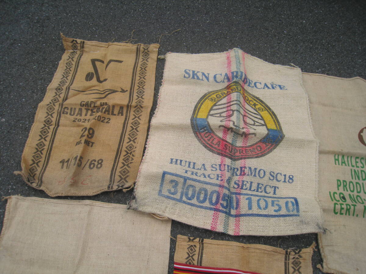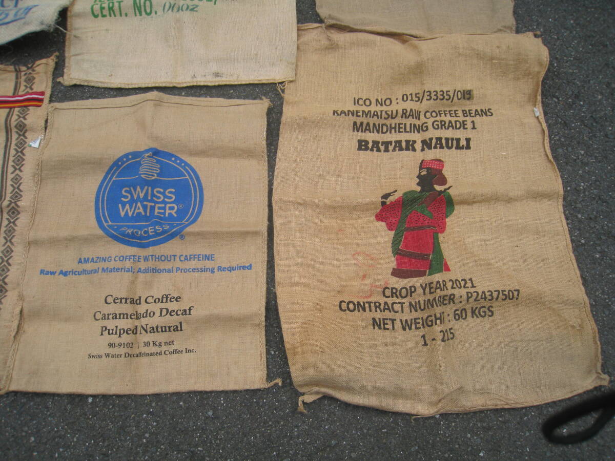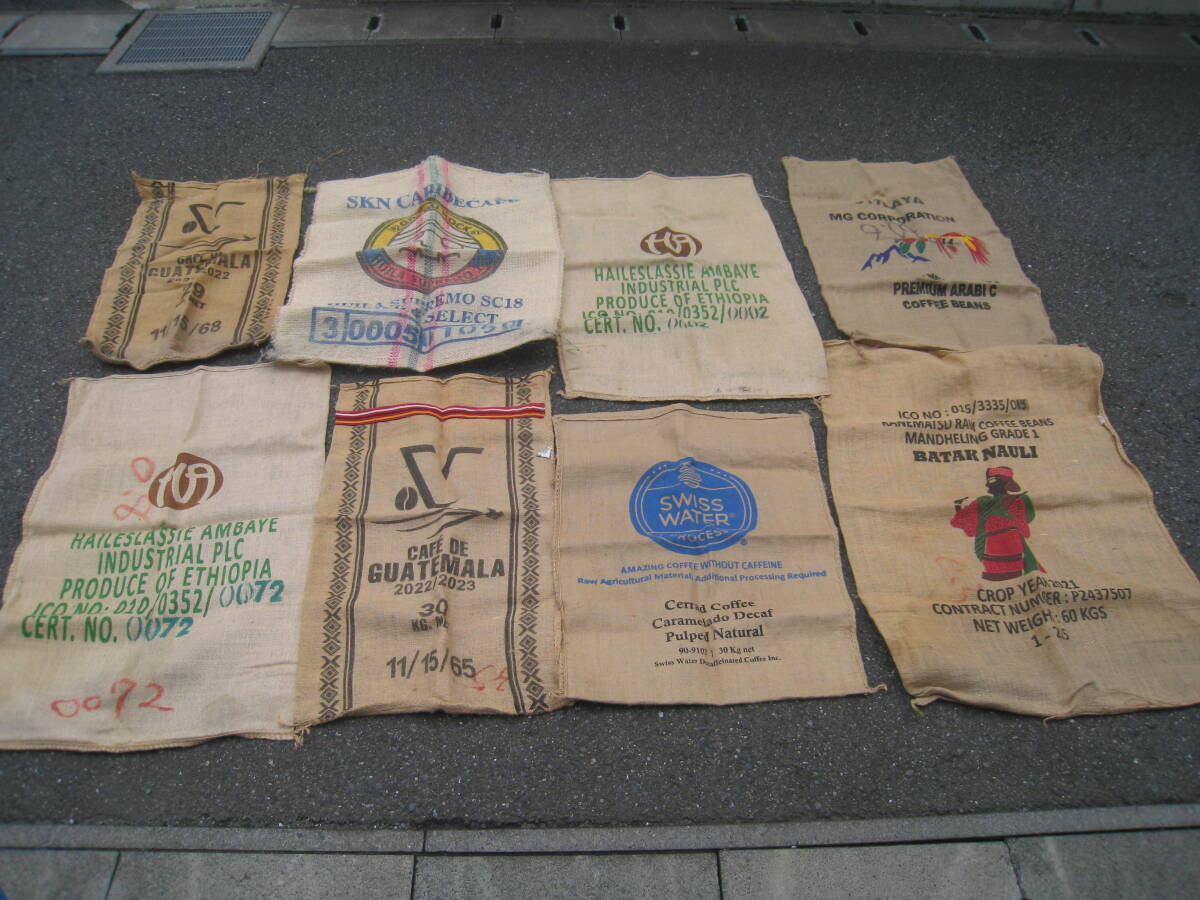 ★中古品 コーヒー豆 麻袋 8種類 セット キャンプ インテリア です。