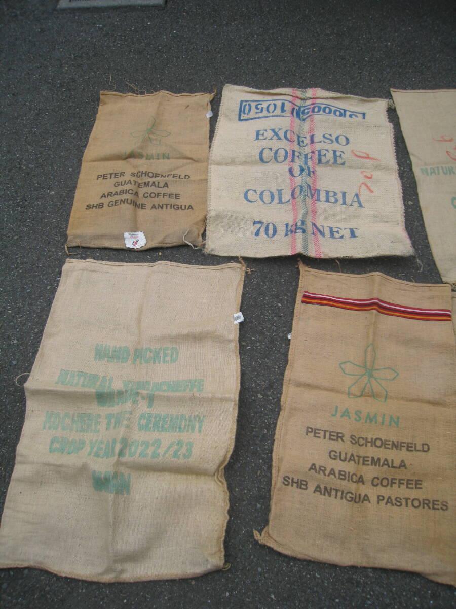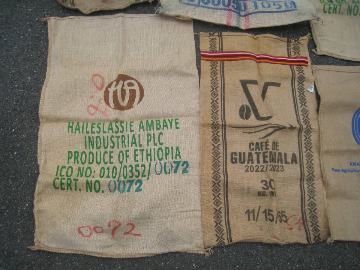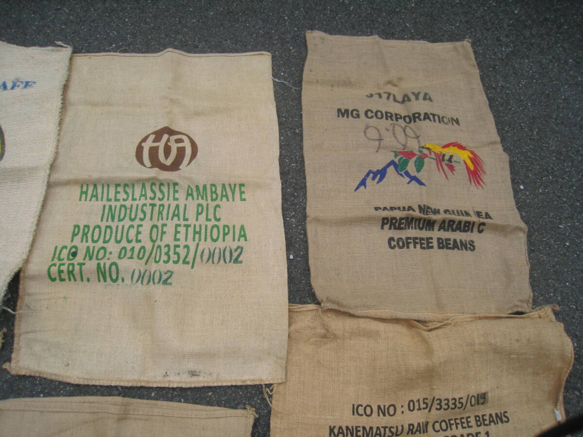 ★中古品 コーヒー豆 麻袋 8種類 セット キャンプ インテリア です。