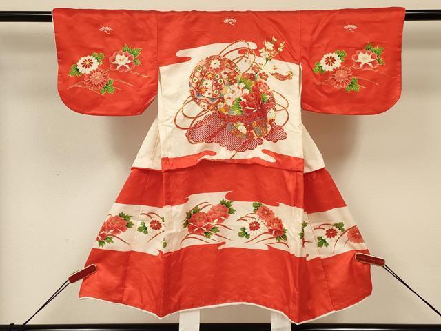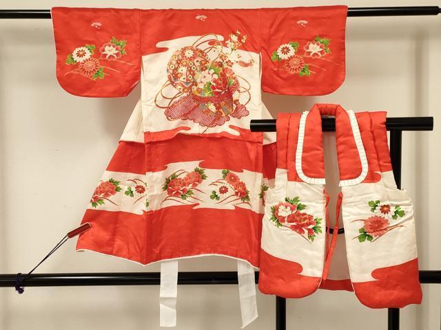 【祝着】 身丈 74cm(肩から) 裄丈 41cm(肩上げ 0cm) 袖丈 25.5cm 縫込み 1.5cm 袖幅 24.5cm 前幅 16cm 後幅 17cm 着物縫いこみ 内揚げ 0cm (腰上げ 2cm) 裄 お袖側 約1cm 身頃側 約0cm 【被布】 身丈 46.5cm(肩から) 裄丈 13.5cm(肩上げ 2.5cm) 《 サイズについてはこちら 》 |