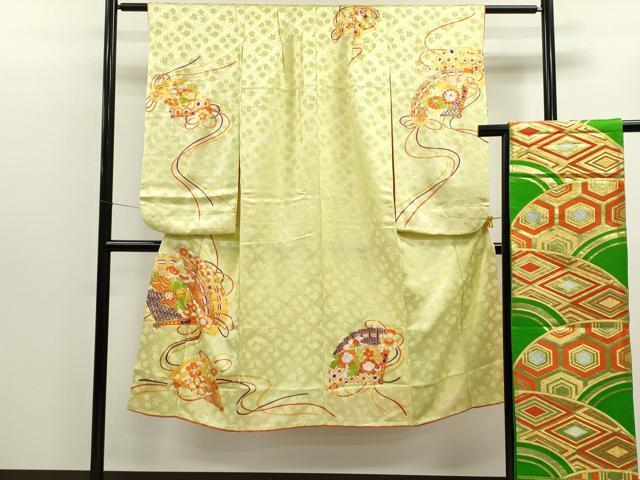 着物【正絹】の状態は接写画像のように左袖前・胴裏所々・重ね衿・衿・左胸付近に薄い汚れがございます。 全通柄袋帯【正絹・芯なし】の状態は締めてはおりますが 特に目立ったシミ汚れなどもなく大変良い状態です。 大変上質な逸品になります。 お安く出品致しますので、是非この機会にいかがでしょうか? ※手先・たれ先未かがりですが着用には問題ありません。 |