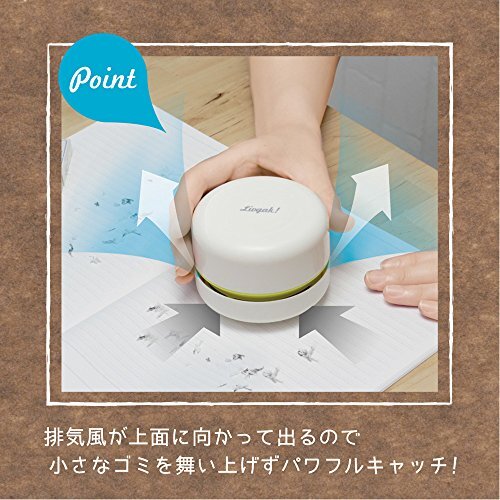 勉強後のテーブルをラクラクお掃除。 小さなゴミをパワフルキャッチ。 ・排気風が上面に向かって出るので小さなゴミを舞い上げない。 ・邪魔にならないコンパクト設計。 ・電源遮断安全機構付。 ・アルカリ単三乾電池2本使用(別売)