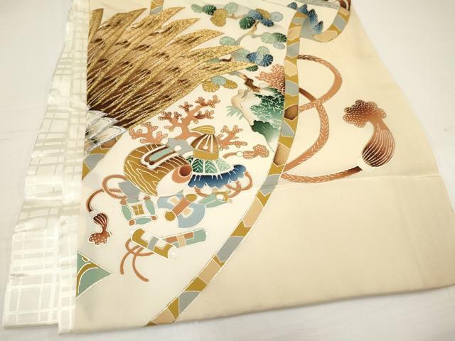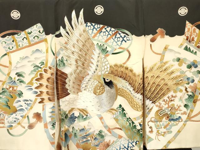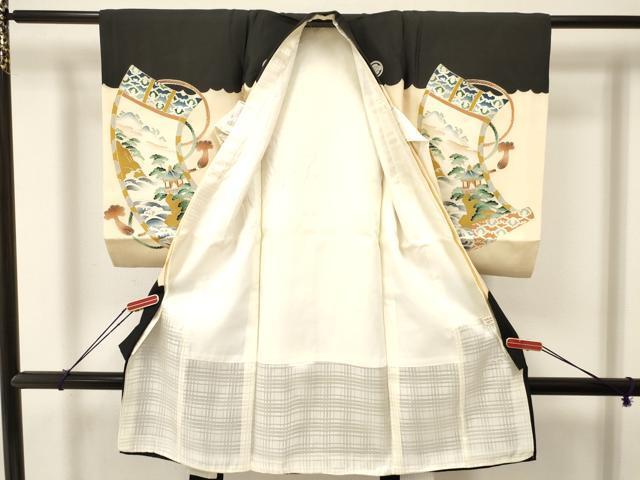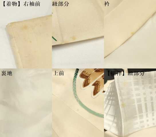 産着【着物:正絹・襦袢:化繊・五つ紋】の状態は接写画像のように 着物:右袖前・紐部分・衿・裏地・上前、襦袢:紐部分に薄い汚れがございますが その他特に目立ったシミ汚れなどもなく大変良い状態です。 大変上質な逸品になります。 お安く出品致しますので、是非この機会にいかがでしょうか? ※袖は大名袖になっております。 |