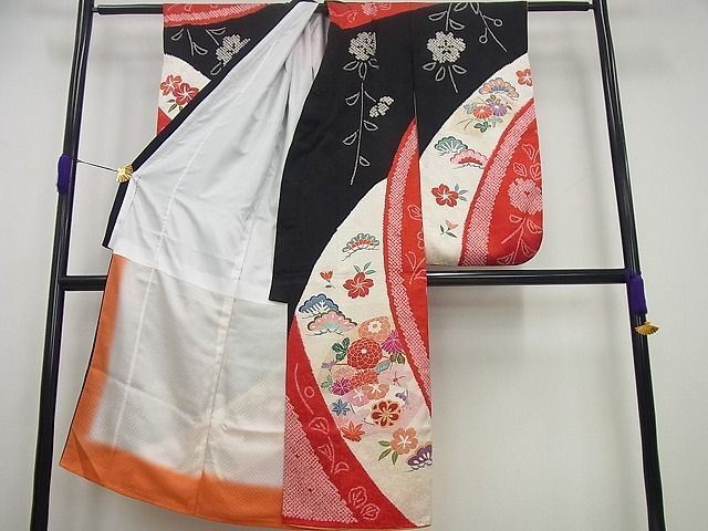 身丈 137cm(肩から) 裄丈 54.5cm 肩揚げ 1.0cm 袖丈 76.5cm 袖幅 32cm 前幅 22cm 後幅 26cm 着物縫いこみ 内揚げ 0cm 裄 お袖側 約 2.0cm 身頃側 約 0cm 《 サイズについてはこちら 》 |