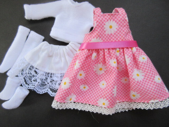 素材は綿です。膝が見えない丈、後ろ全開で着せ易いです。ペンダントとリボンとペチコート付きです。