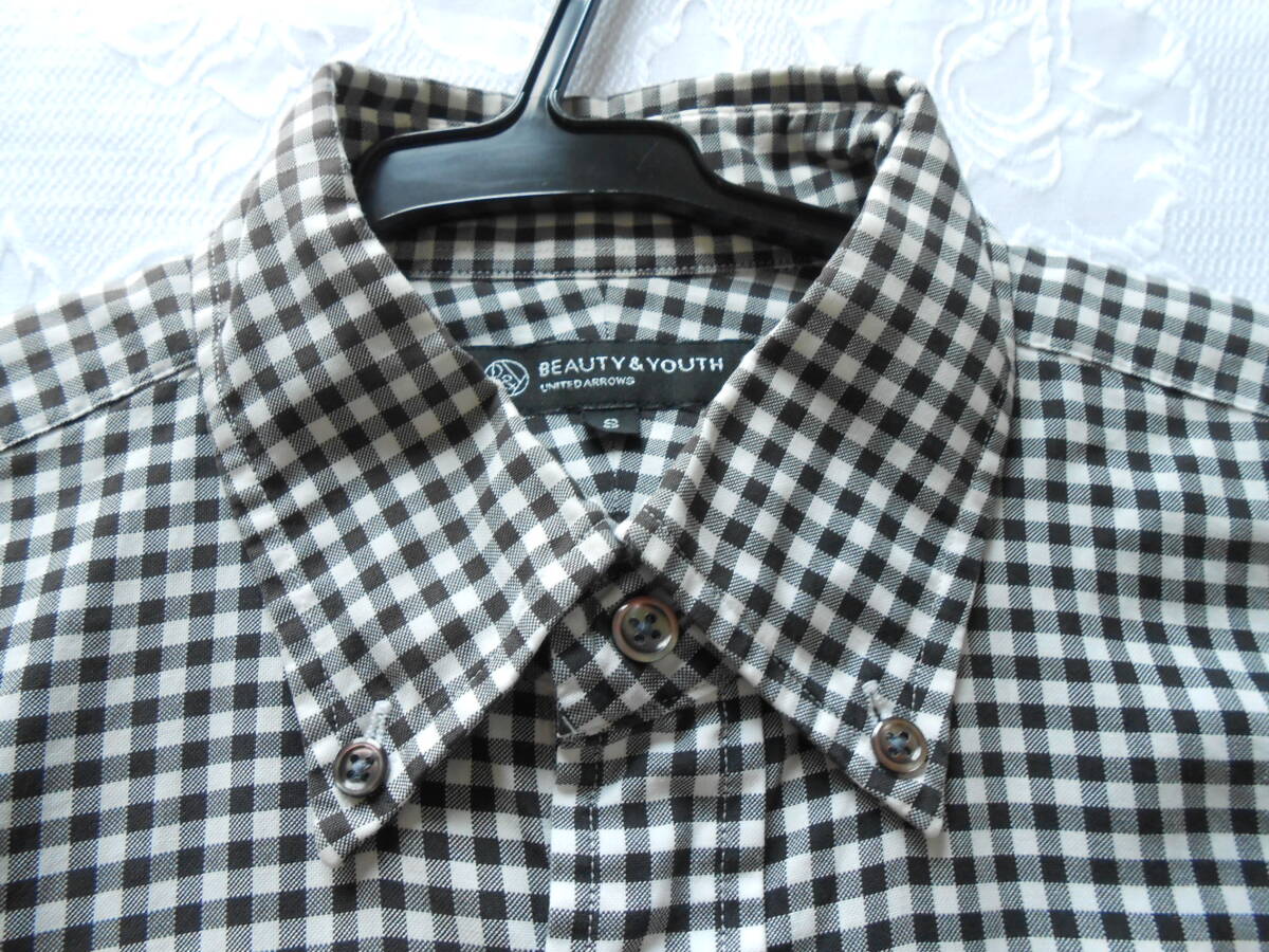 ユナイテッドアローズ BEAUTY&YOUTH ボタンダウン 黒ギンガムチェック柄 長袖シャツ