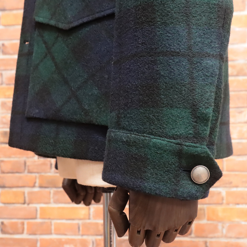 クラシカルなフラノ素材にチェック柄を施した、モダンな雰囲気のM-65ジャケット。柔らかさと耐久性を両立したフラノ特有の温かみのある手触りが、着心地の良さを引き立てます。チェック柄が大人の落ち着いた表情を演出し、シンプルなコーディネートにもアクセントを加えます。秋冬シーズンのアウターとして重宝する一着です。
