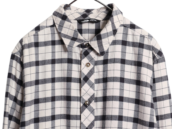 商品名 | ノースフェイス チェック フランネル シャツ メンズ XL / 古着 アウトドア ネルシャツ 長袖シャツ マチ付き 黒 白 モノトーン 大きいサイズ |