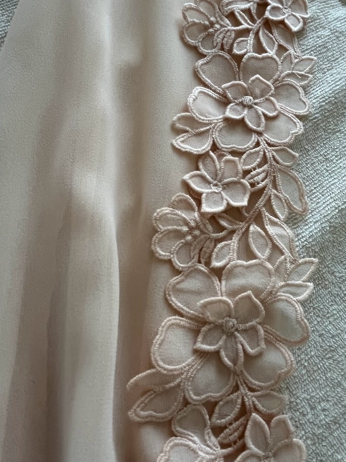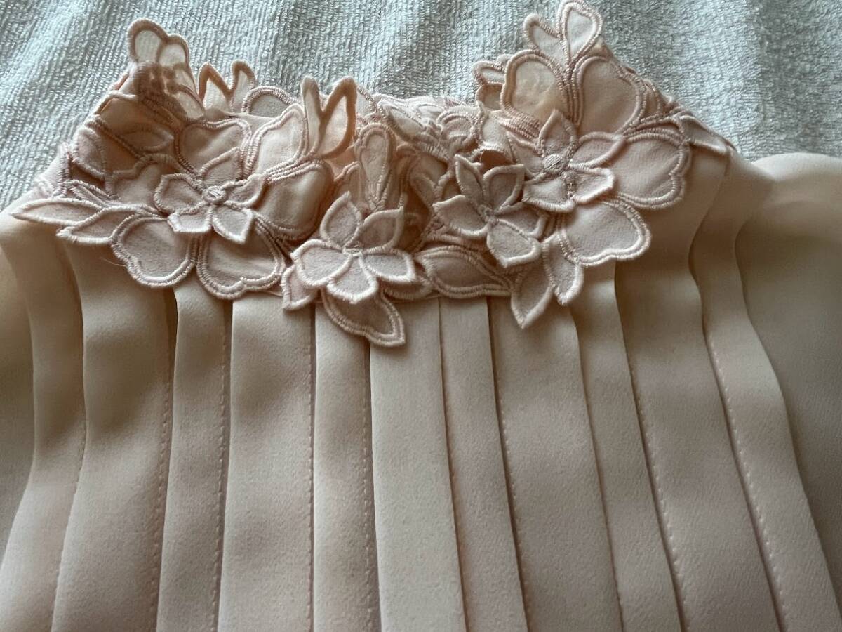 袖のお花レースが素敵なので、羽織物を脱いだ時も好印象です。