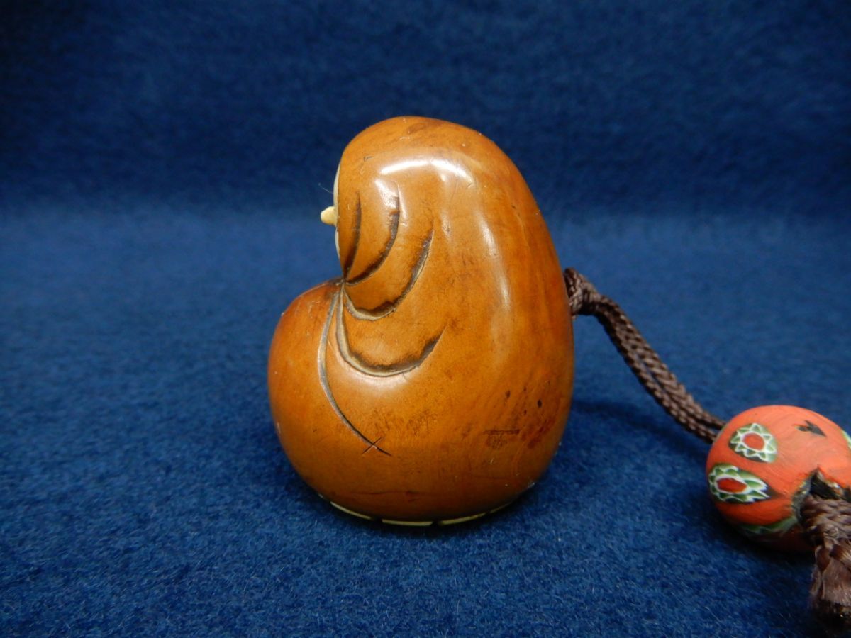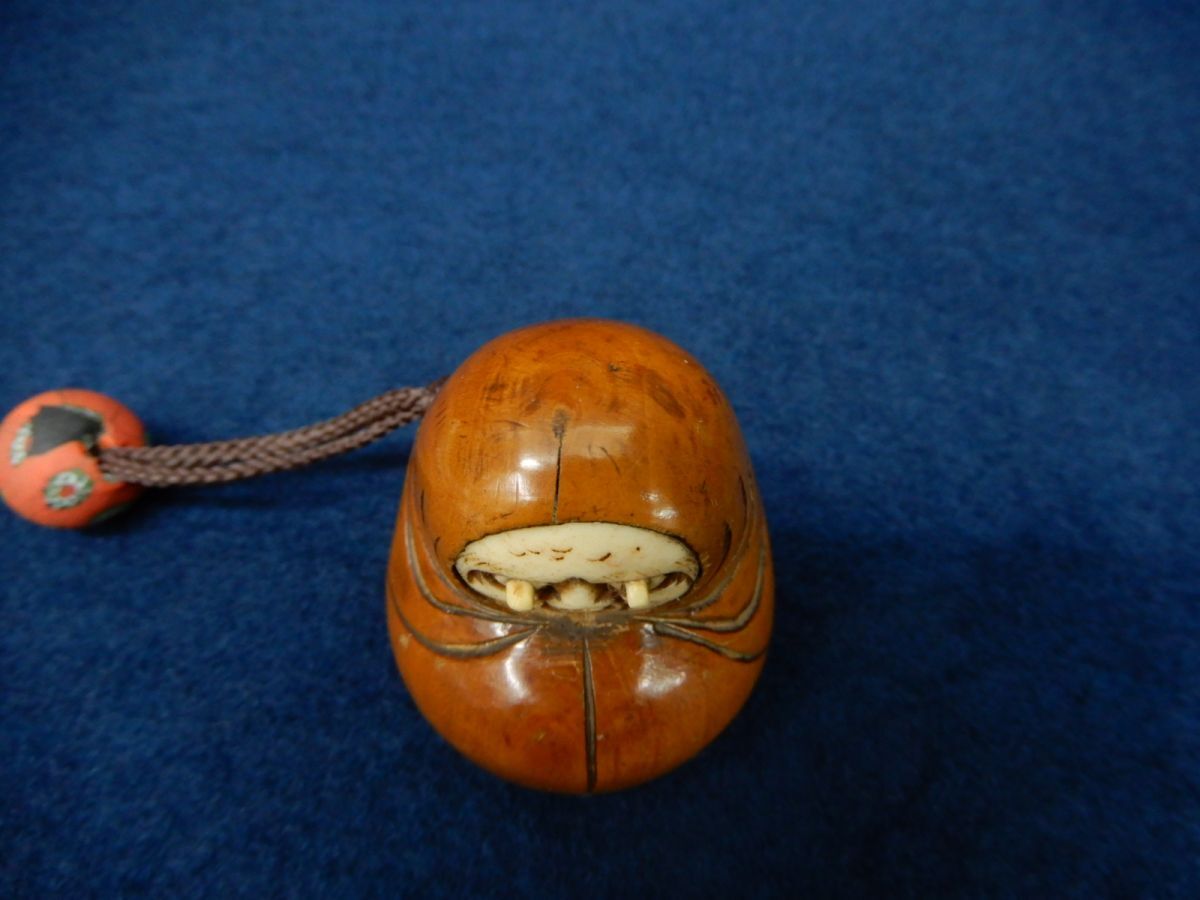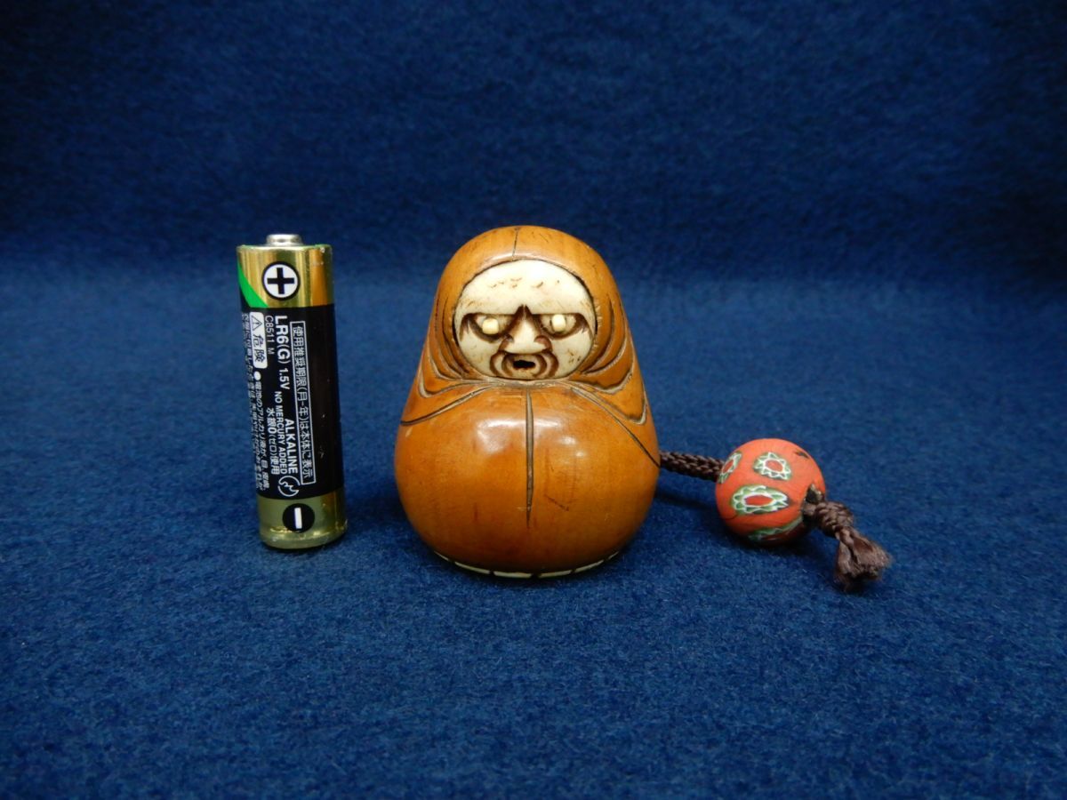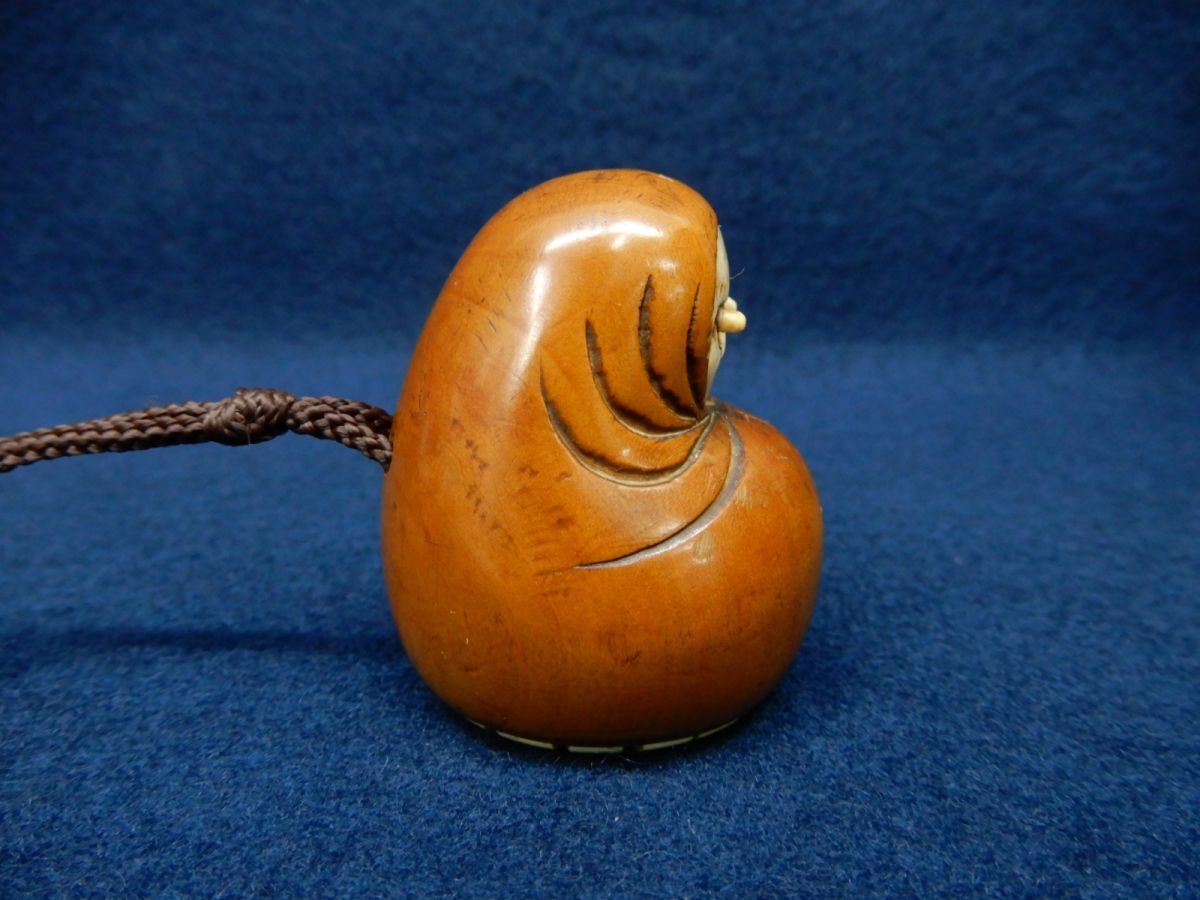 ★根付01 木彫骨製 無銘「達磨大師」緒締め★提げ物//消費税0円