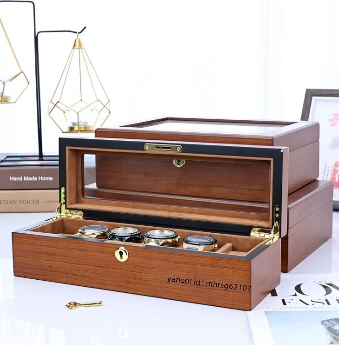 レトロなスペード木目のラッカーマット時計ディスプレイケースロック付き時計収納防塵収納ケース