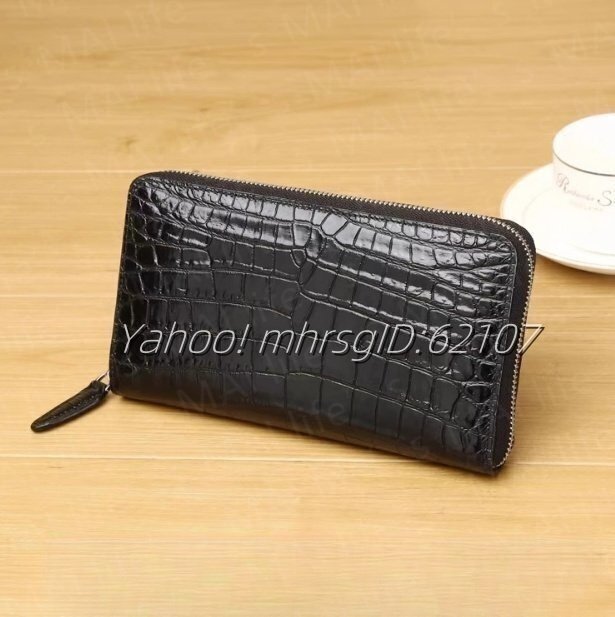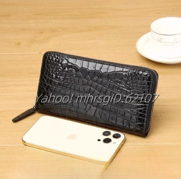 クロコダイル ラウンドファスナー 長財布 ワニ革 本革 ブラック 最高級 貴重 本物 大容量 カード入れ センター取り 腹部革使用