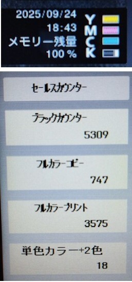 | トータルカウンター | 9,649 枚 ※落札後発送前に動作確認を再度行いますので、カウンター・トナー残量の数値が多少変動します。ご了承下さい。 | ||