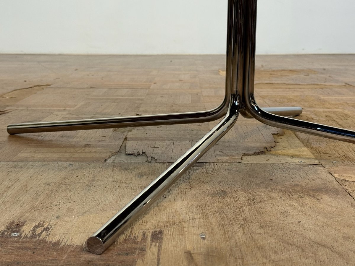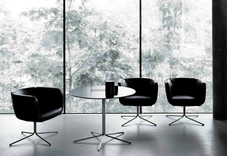 クロムメッキのグロッシーな光沢とほっそりとしたポール材で構成した軽やかな持ち上がりと広がりの有機的なラインのベースで、ころんとしたシッティングポケットをミニマムに飾った、やわらかで凛とした佇まいの美しいアームラウンジチェア。Cassina ixc. / Living Divani より。