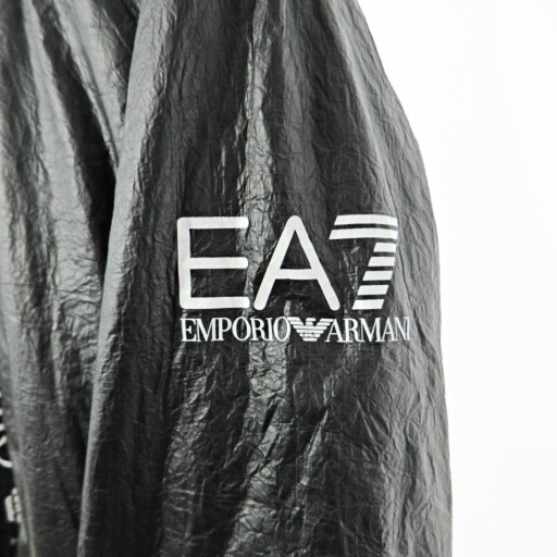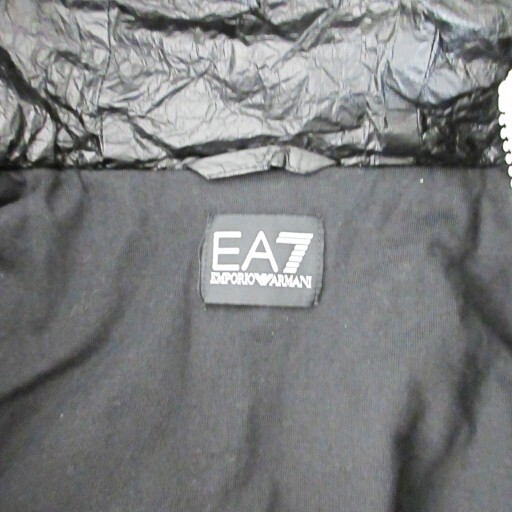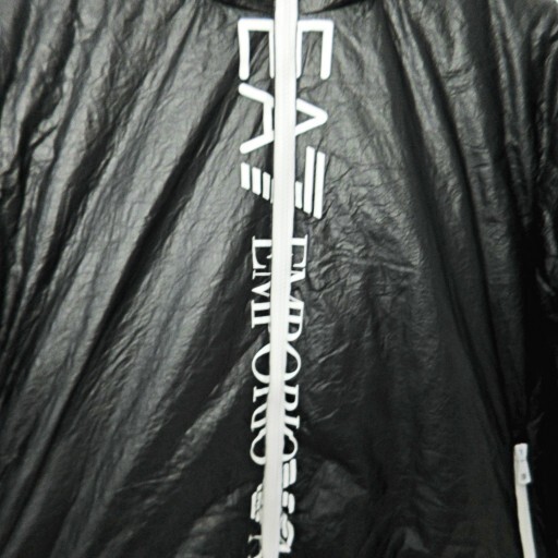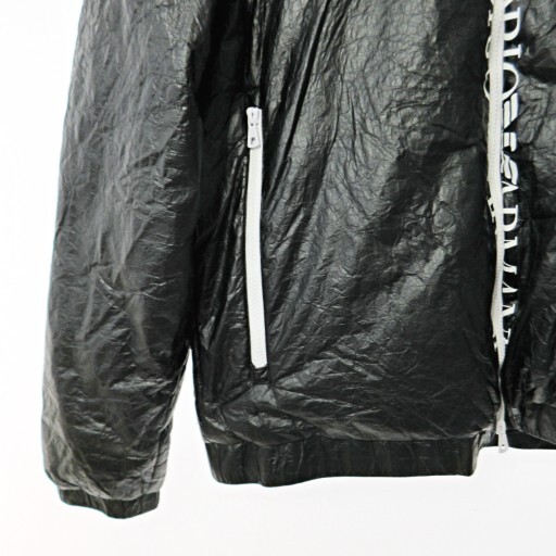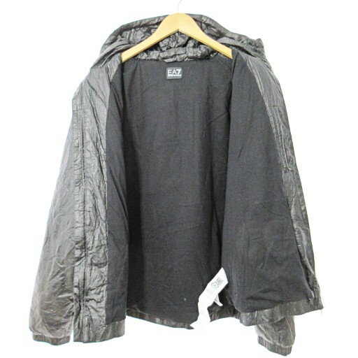 エンポリオアルマーニ EMPORIO ARMANI ロゴプリント 中綿ジャケット ダブルジップ フーディ シワ加工 XXL 黒 0923 IBO79 メンズ