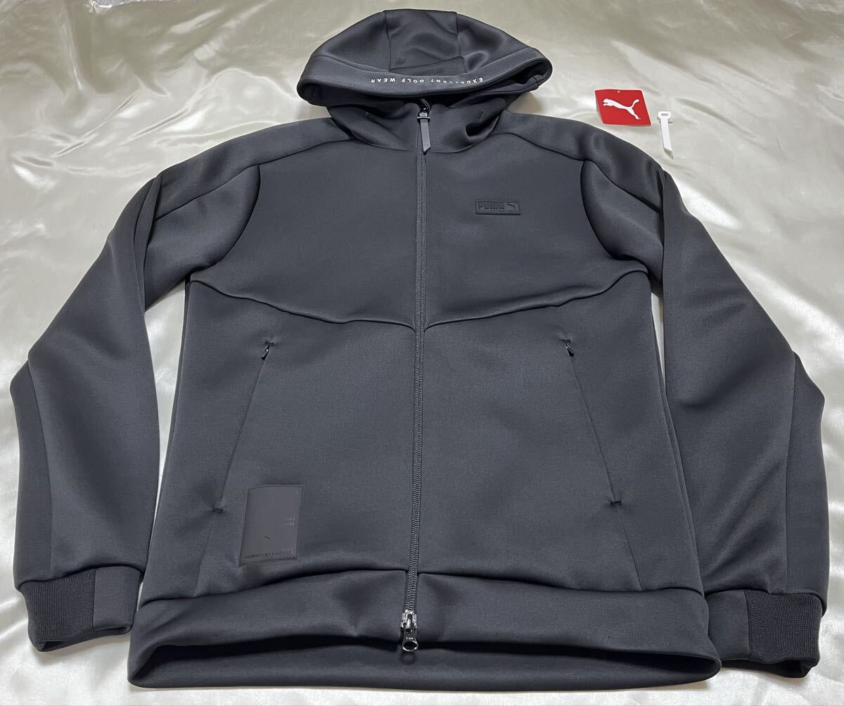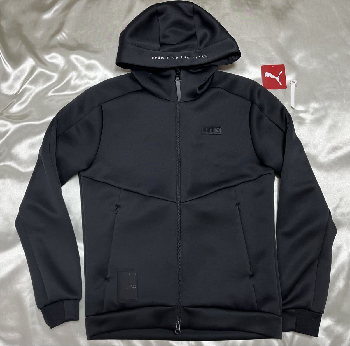 美品 PUMA プーマ ゴルフ EGW フルジップジャケット ジャケット アウター フルジップアップ パーカー フーディー フード付き ブラック S