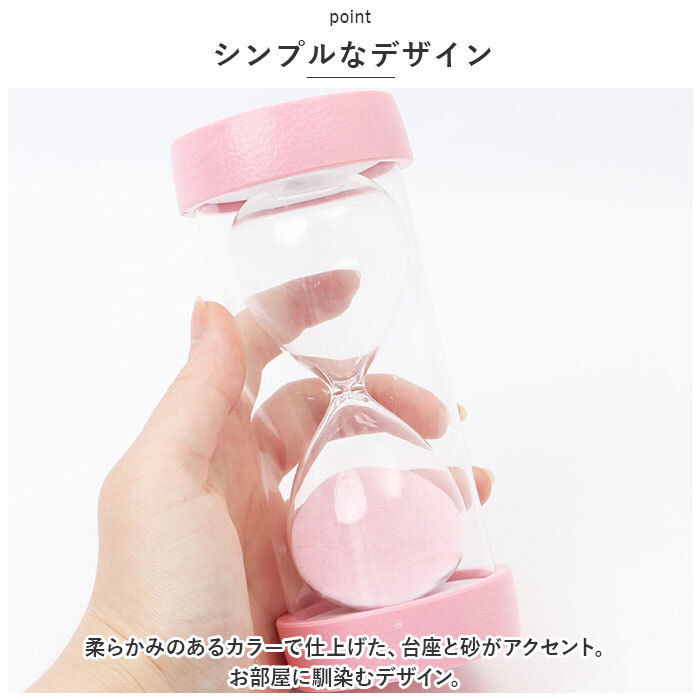 | 商品説明 | ・・手軽に時間を測れる!置いておくだけでインテリアになる砂時計♪ ・【ひっくり返すだけで簡単】 ・スマホやキッチンタイマーなどのデジタル機器と違って、時間を測りたい時に上下にひっくり返すだけ!いざという時にも便利な、設定不要のアナログ構造。 ・【シーンに合わせて使える6タイプ】 ・・3分・5分・10分・15分・20分・30分の6タイプをラインナップ!用途に応じて使い分けできるのが嬉しい◎(※製品の特性上、時間は目安となります。) ・【シンプルなデザイン】 ・柔らかみのあるカラーで仕上げた、台座と砂がアクセント。お部屋に馴染むデザイン。 ・【リラックスタイムのお供に】 ・ぼーっと眺めているだけで、ゆったりとした時間を感じさせてくれる!忙しい毎日の中に癒やしの時間を♪ ・【知育道具としても活躍】 ・歯磨きや朝の準備、ゲーム時間・・・。お子さまが時間の感覚を身につけるトレーニングにもおすすめ! |