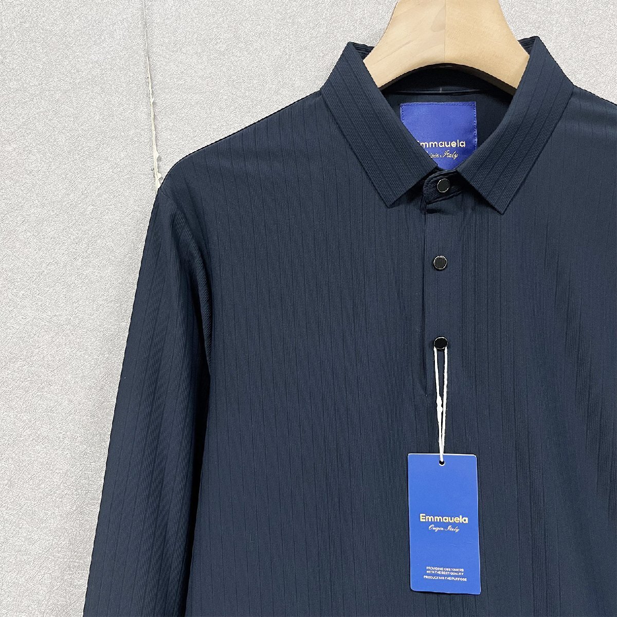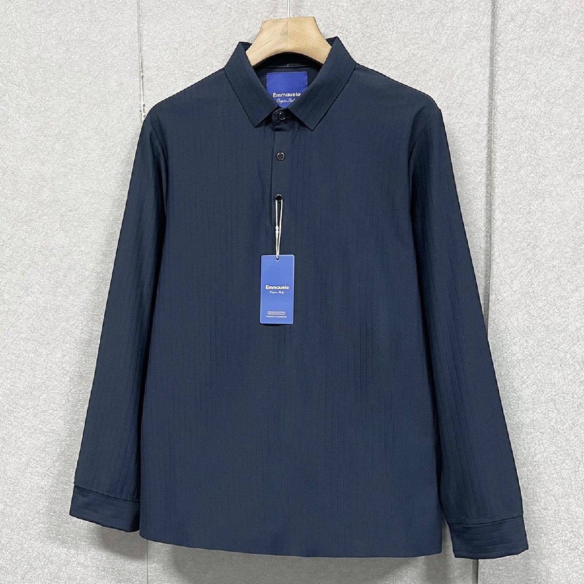 高級・定価4万◆Emmauela・イタリア・ミラノ発◆長袖 ポロシャツ シルク混 柔らか 無地 ストライプ柄 トップス 長袖 ビジネス ゴルフ 通勤 2XL/52サイズ