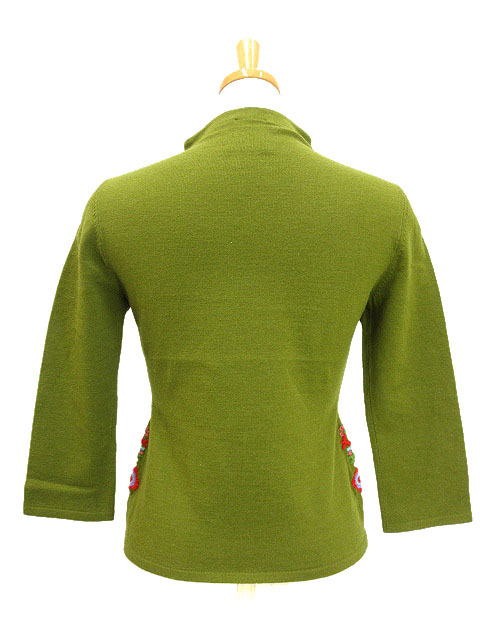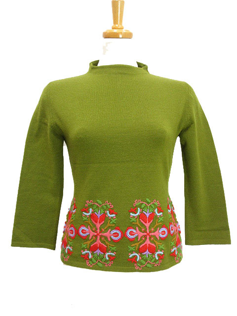 シビラ SYBILLA ニット トップス 刺繍 ボトルネック M グリーン 緑 ウール プルオーバー セーター レディース
