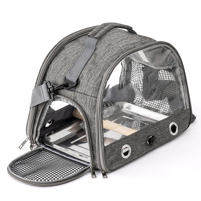 小動物用 インコ キャリー 外出 持ち運び インコ 止まり木付き キャリーケース バッグ お出かけ 手提げ 肩掛け 2WAY ケージ JHB0007 グレー
