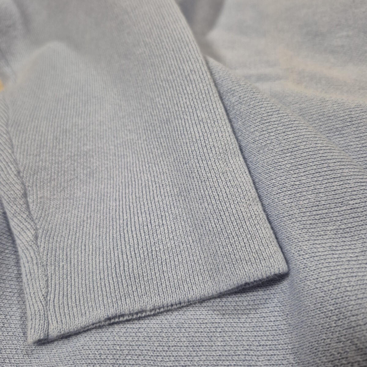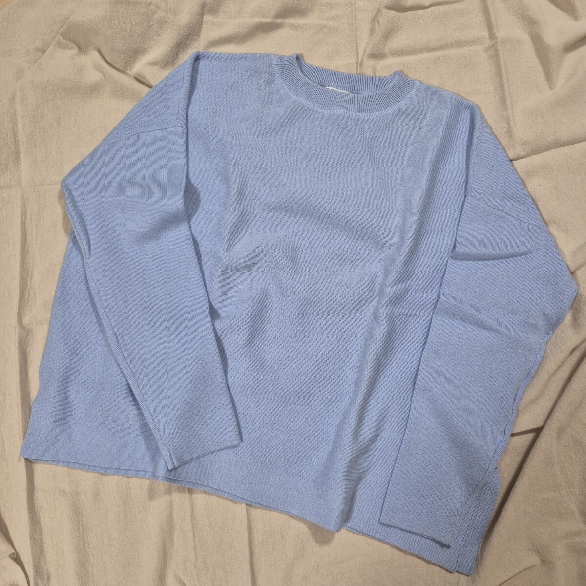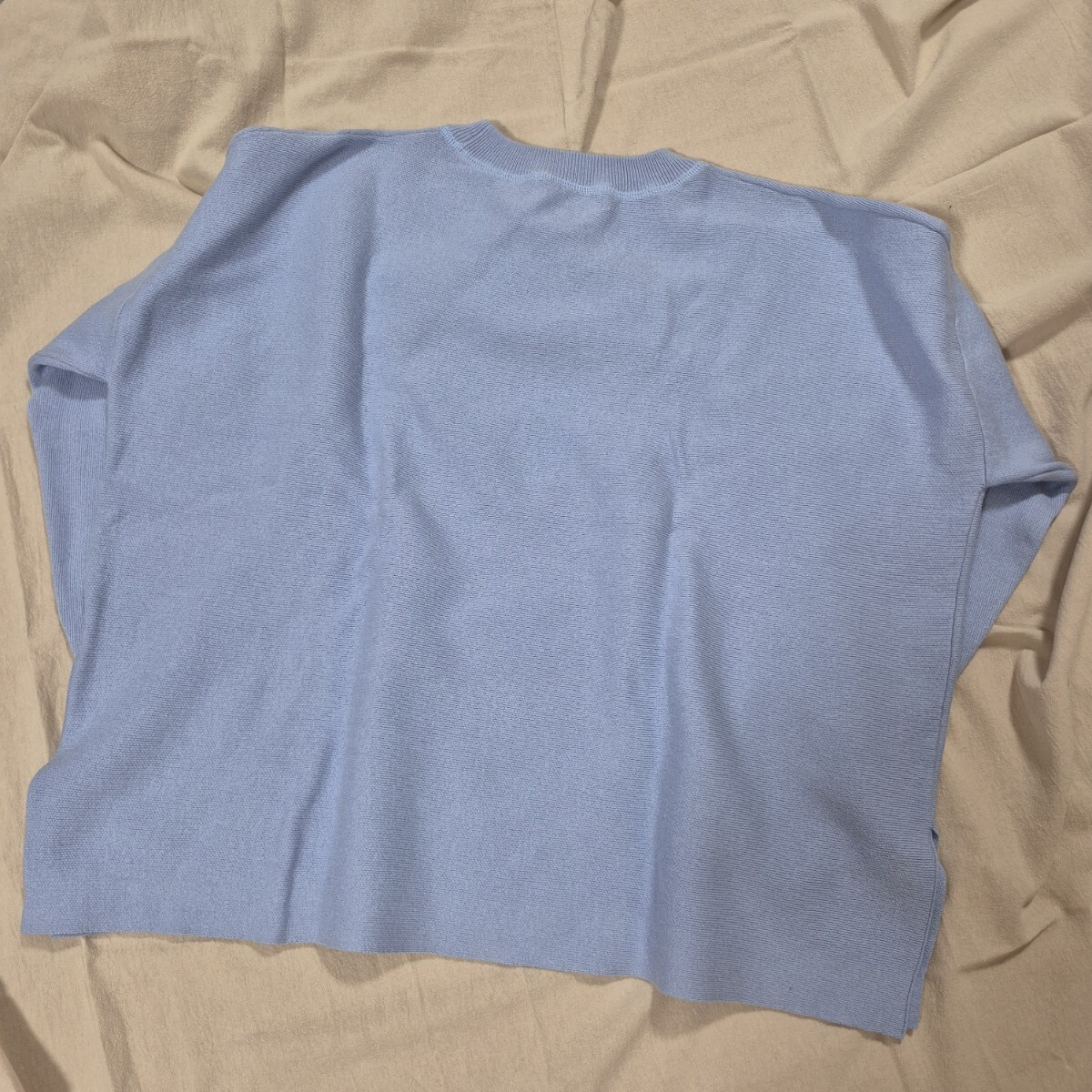 ニット・セーターとはしていますが、裏地などもなく薄手の綺麗な水色無地のシンプルな長袖セーター。