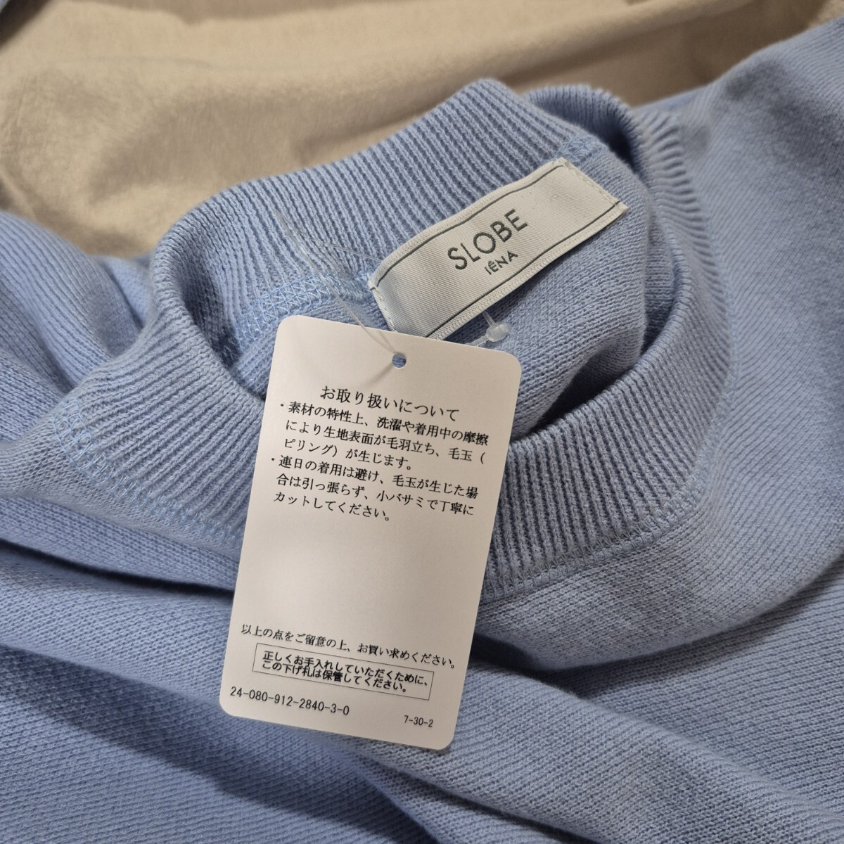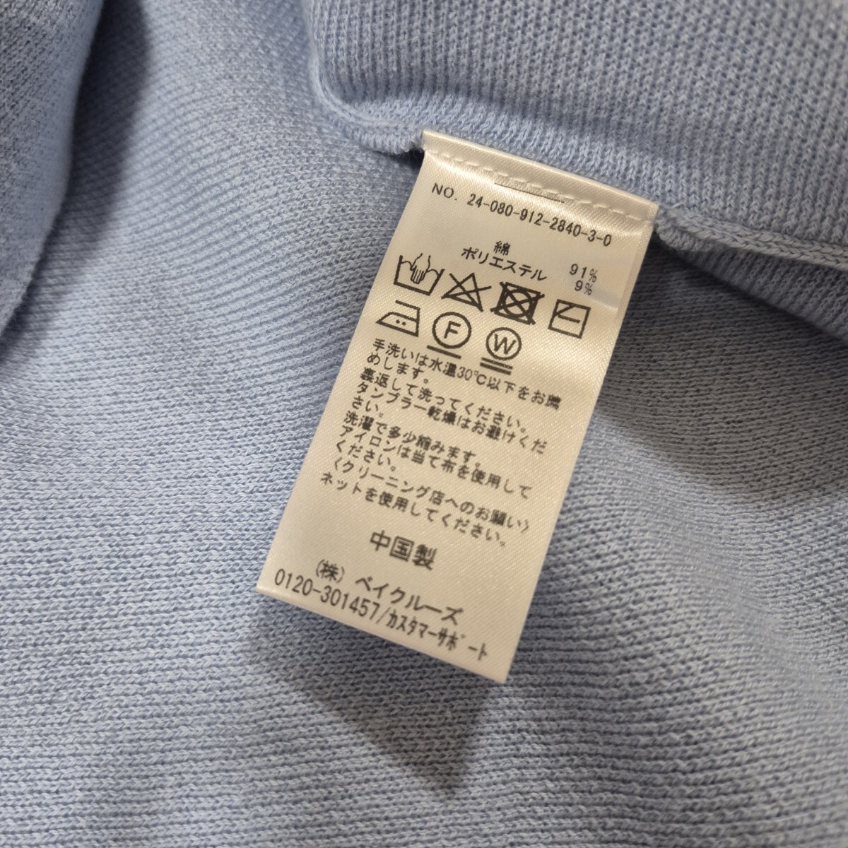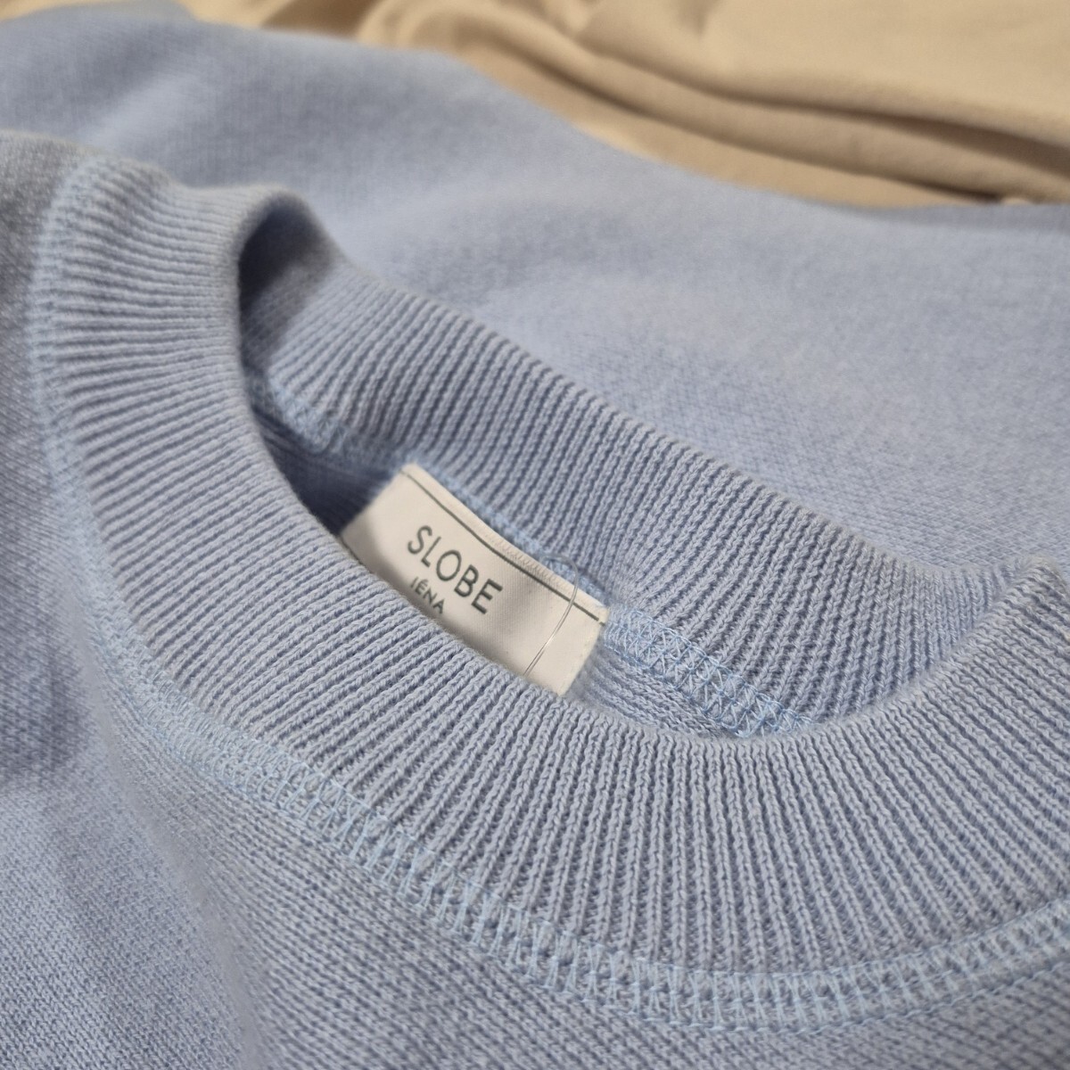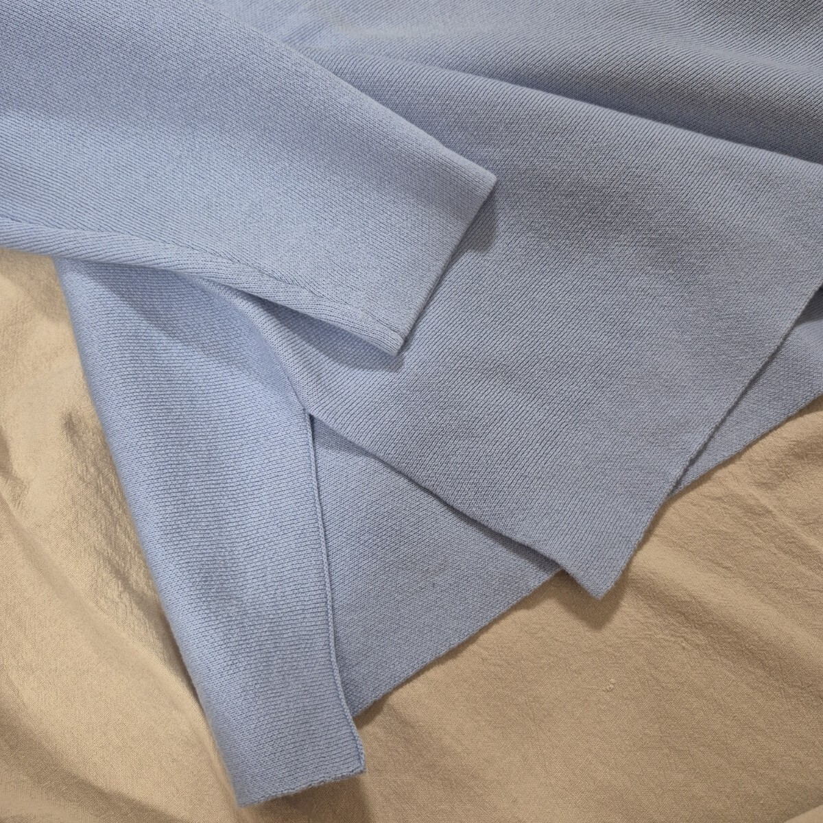 ニット・セーターとはしていますが、裏地などもなく薄手の綺麗な水色無地のシンプルな長袖セーター。