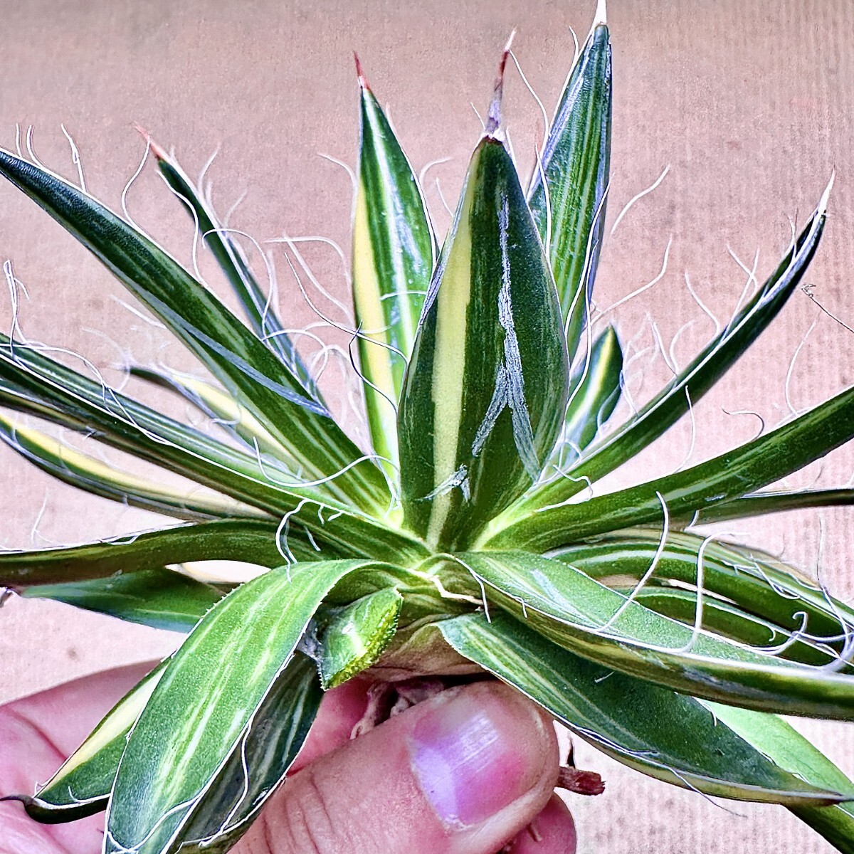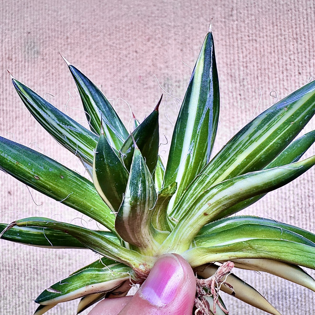 【Lj_plants】Q887 厳選 多肉植物 アガベ 王妃乱れ雪原始種 超縞斑 極上斑です Sクラスは希少株
