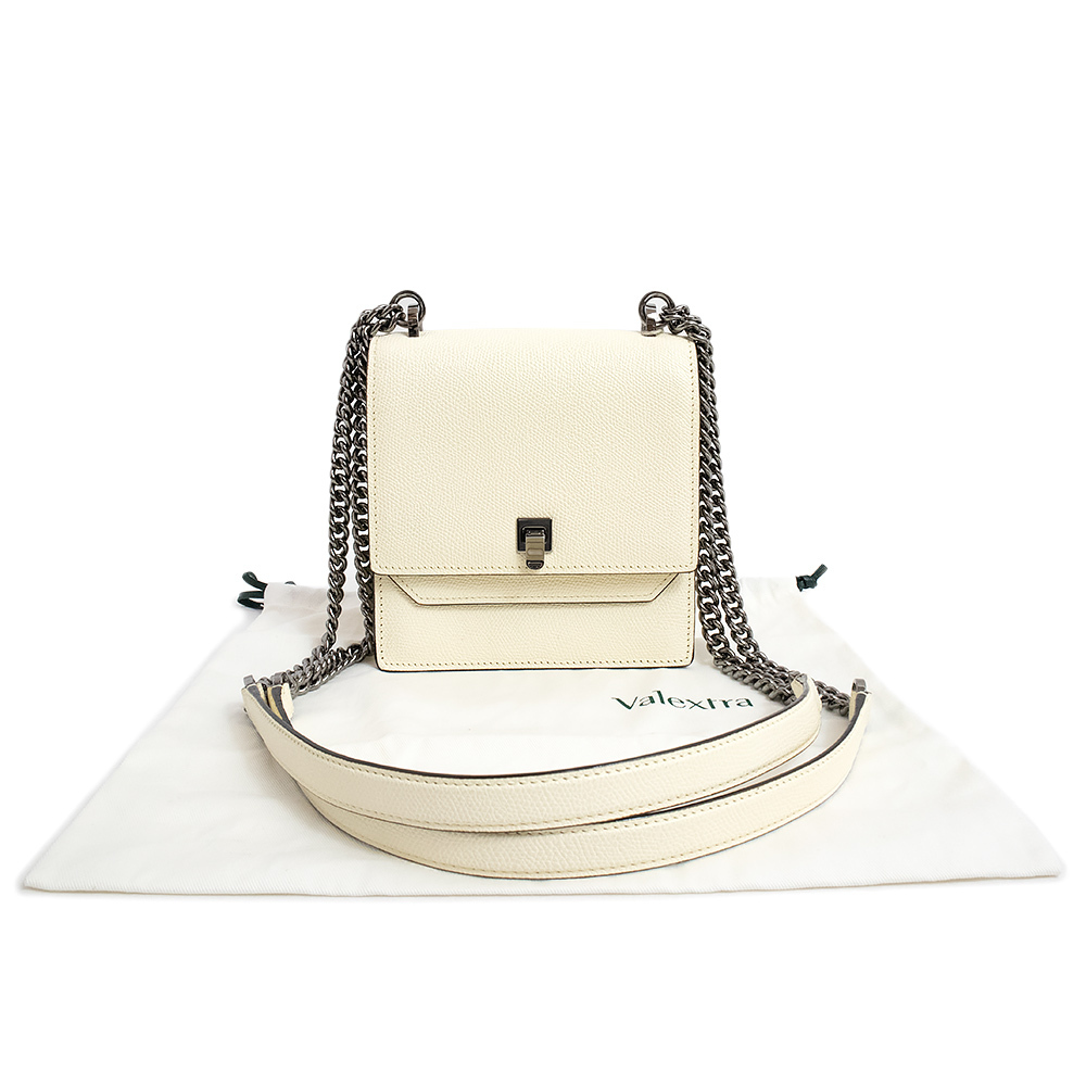 (未使用 展示品)ヴァレクストラ Valextra スプリッツァ スモール チェーン ショルダーバッグ カーフ レザー ホワイト 白 V5D55-028
