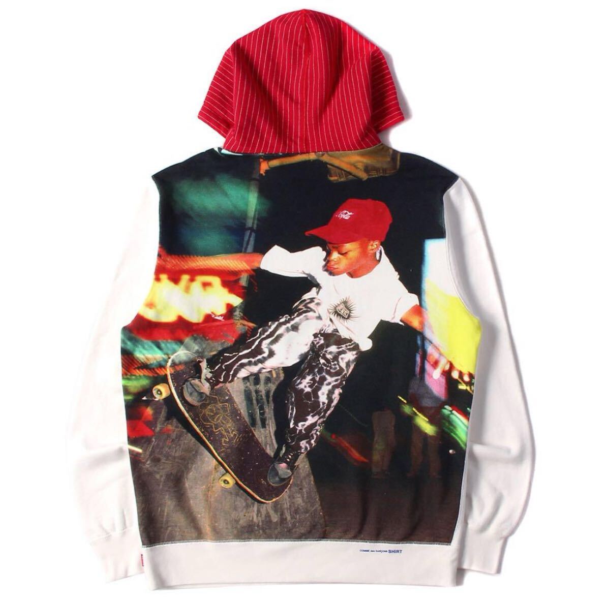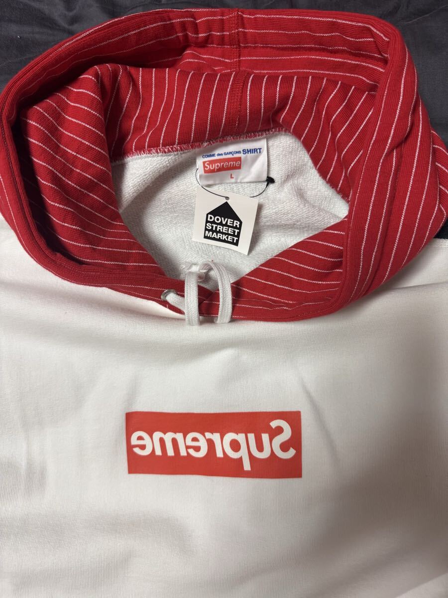シュプリーム コムデギャルソンシャツ ボックスロゴプルオーバーパーカー ホワイト/レッド