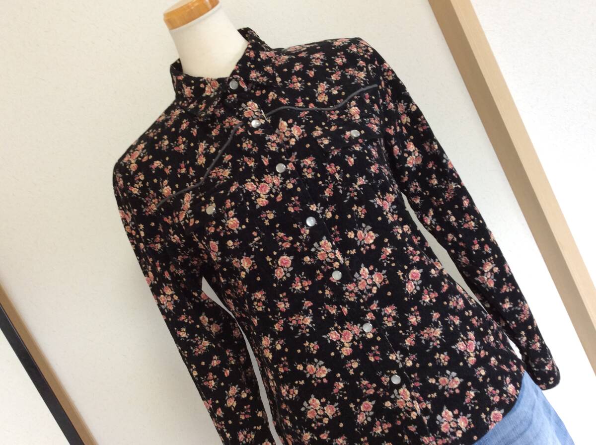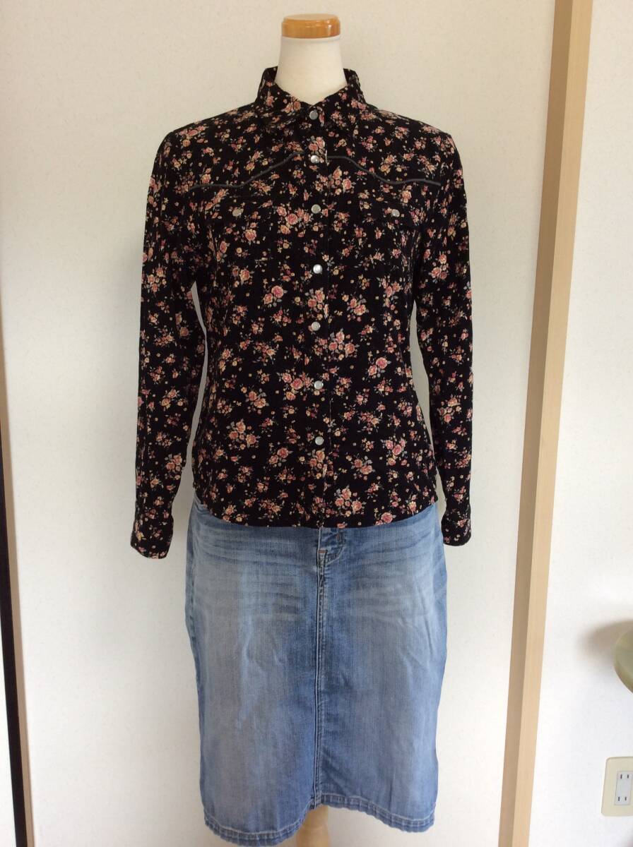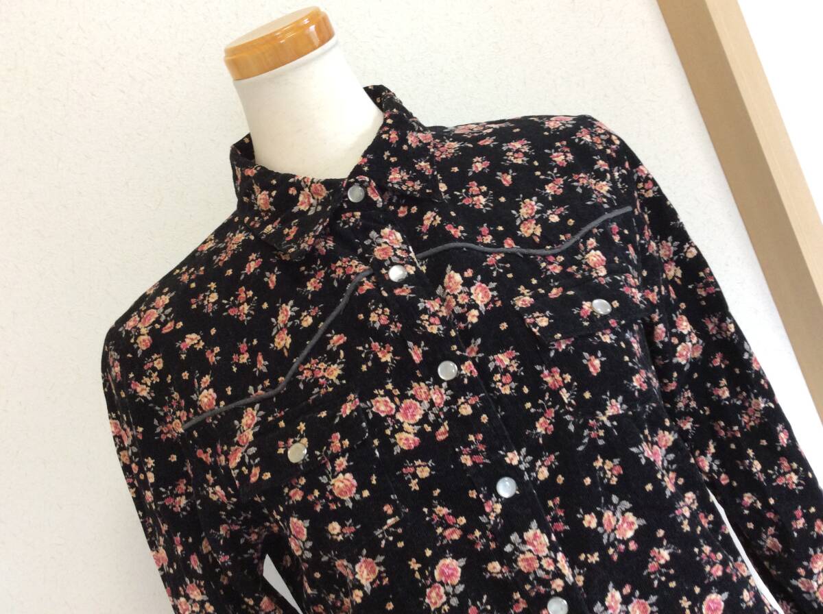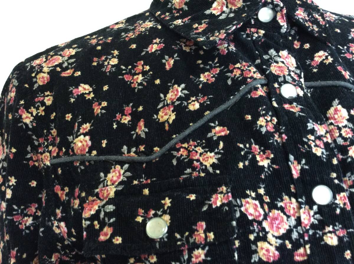 即決 八ヶ岳プレミアムアウトレット内 エドウィン購入 コーデュロイ ウエスタンシャツ 黒地に花柄 レターパックライト込 9月28日初出品