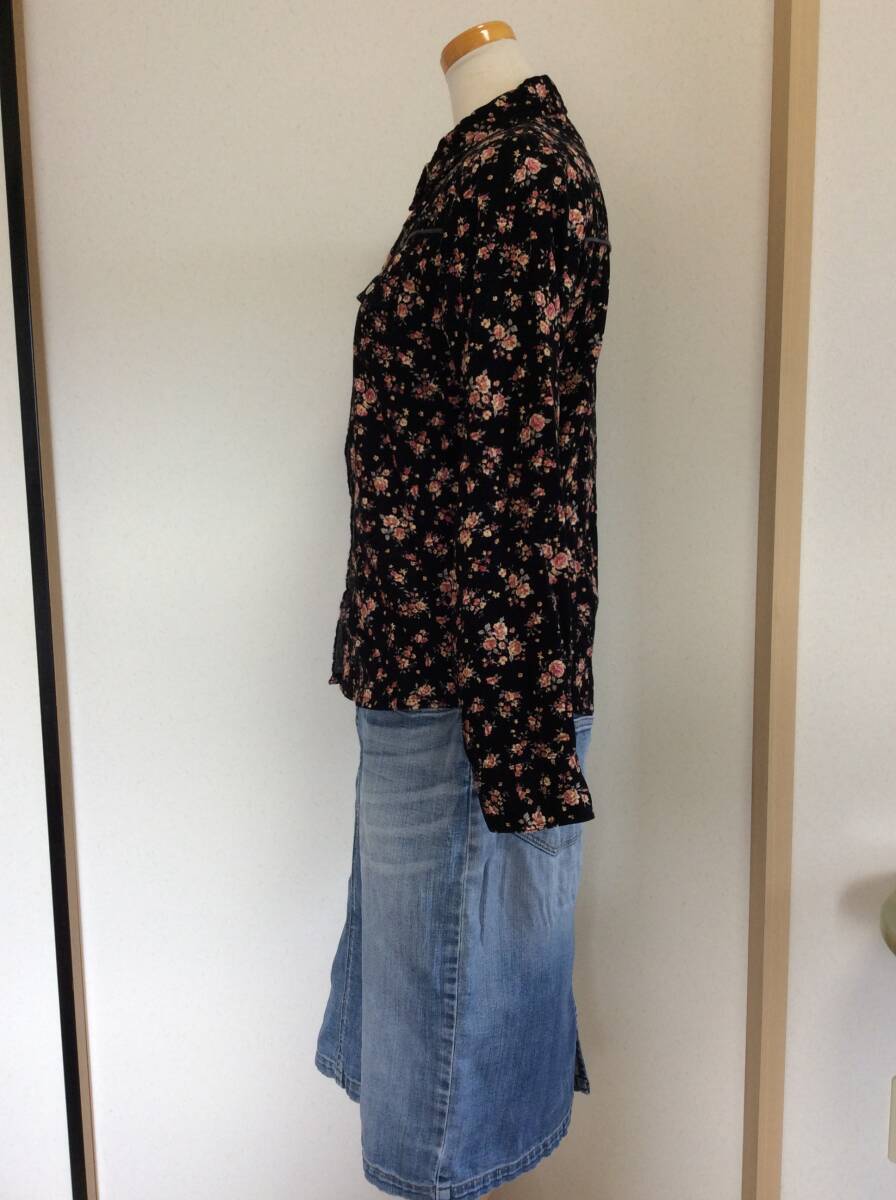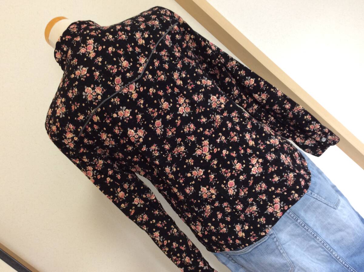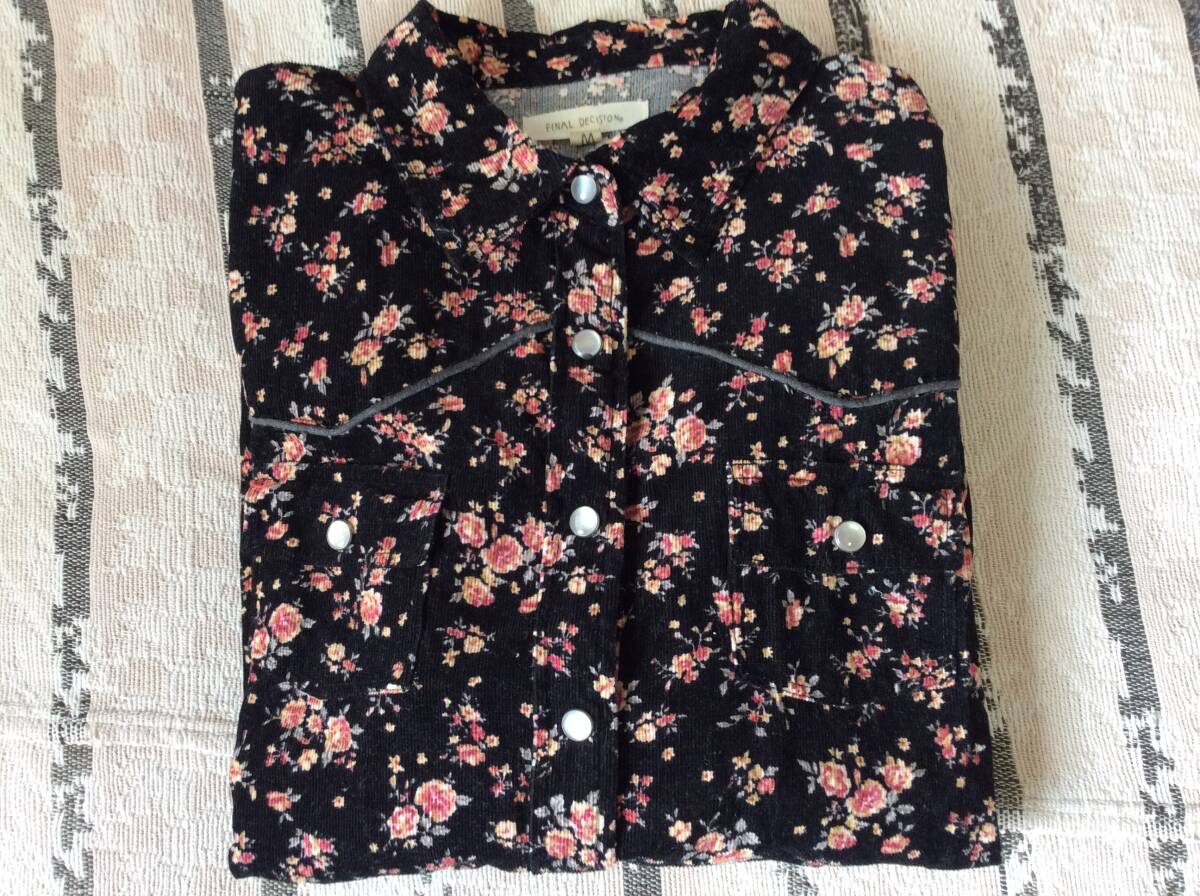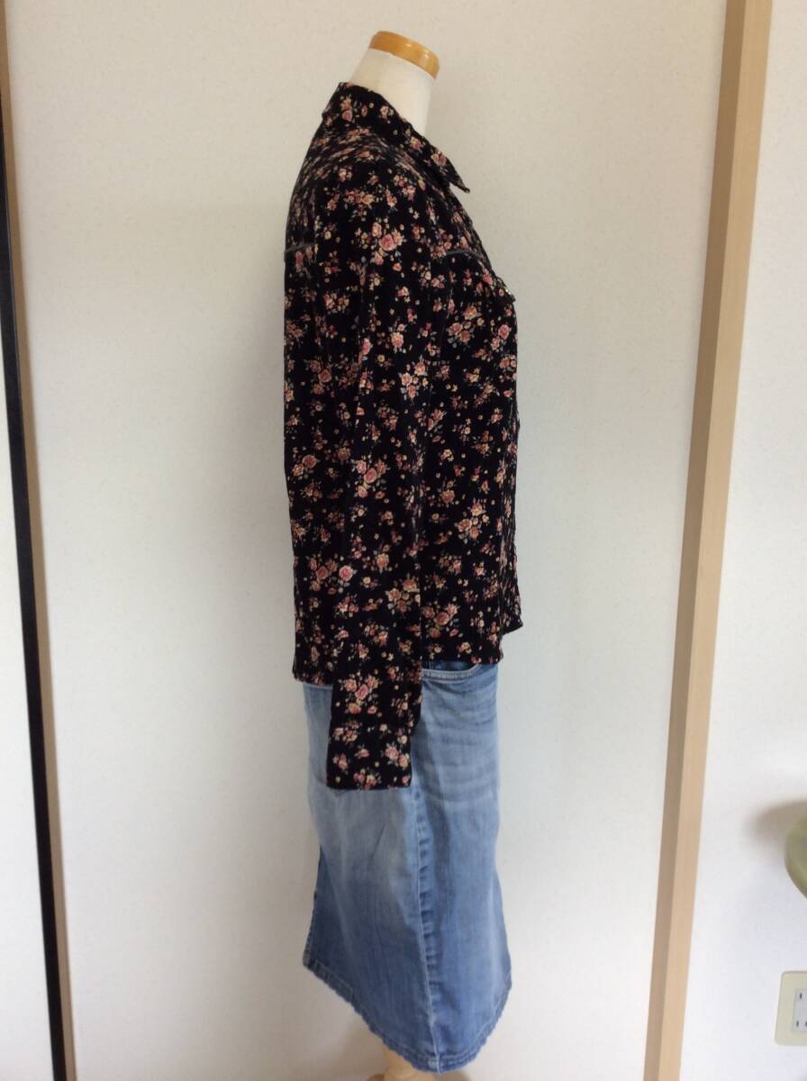即決 八ヶ岳プレミアムアウトレット内 エドウィン購入 コーデュロイ ウエスタンシャツ 黒地に花柄 レターパックライト込 9月28日初出品
