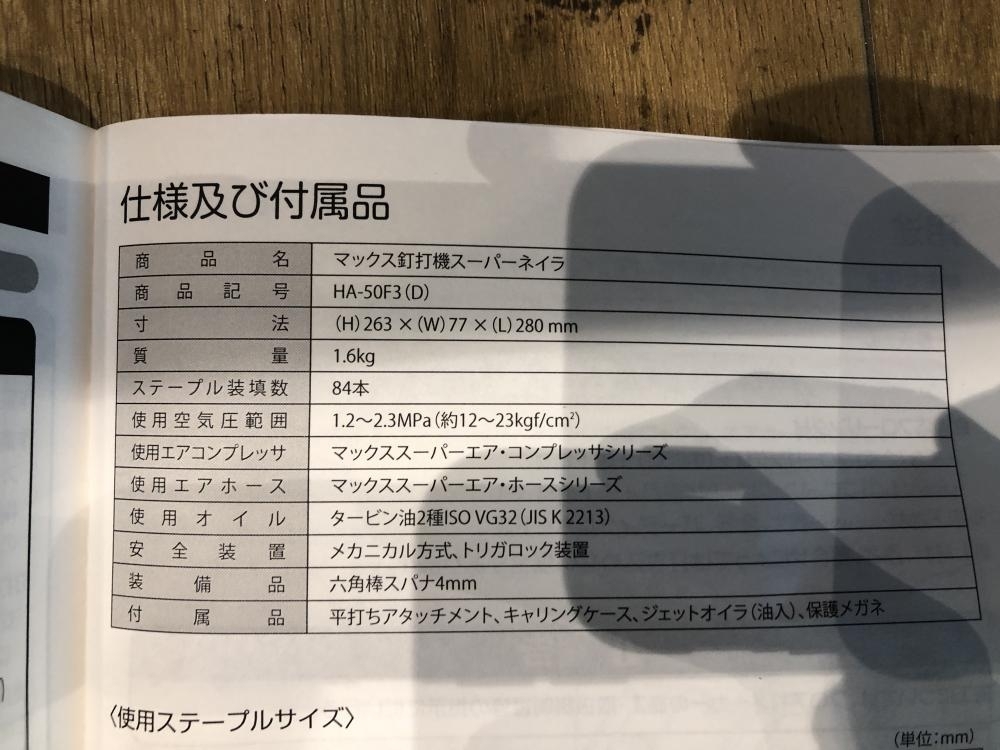 MAX ■商品名 50mm高圧フロアネイラ ■型番 HA-50F3(D) |