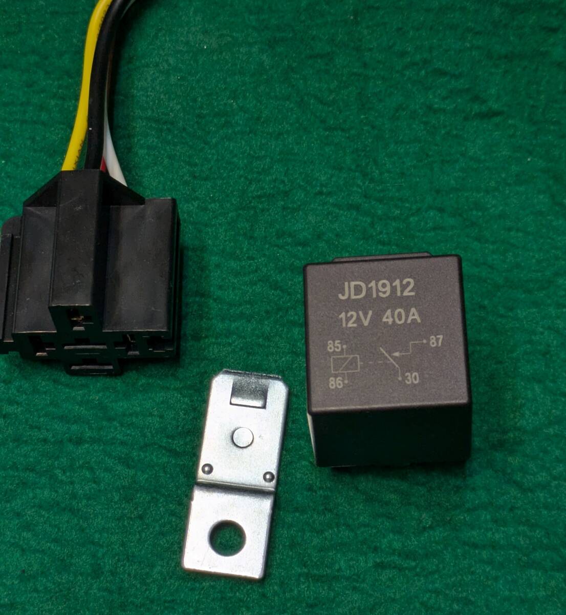 直流12Vパワーリレー 動作電圧12V接点容量40A ソケット取り付け金具付き 送料全国一律ゆうメール180円。