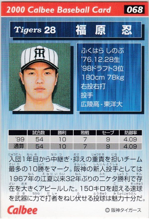 ●2000カルビー 【福原 忍】 プレ版:金箔サインパラレル No.068:阪神 R2